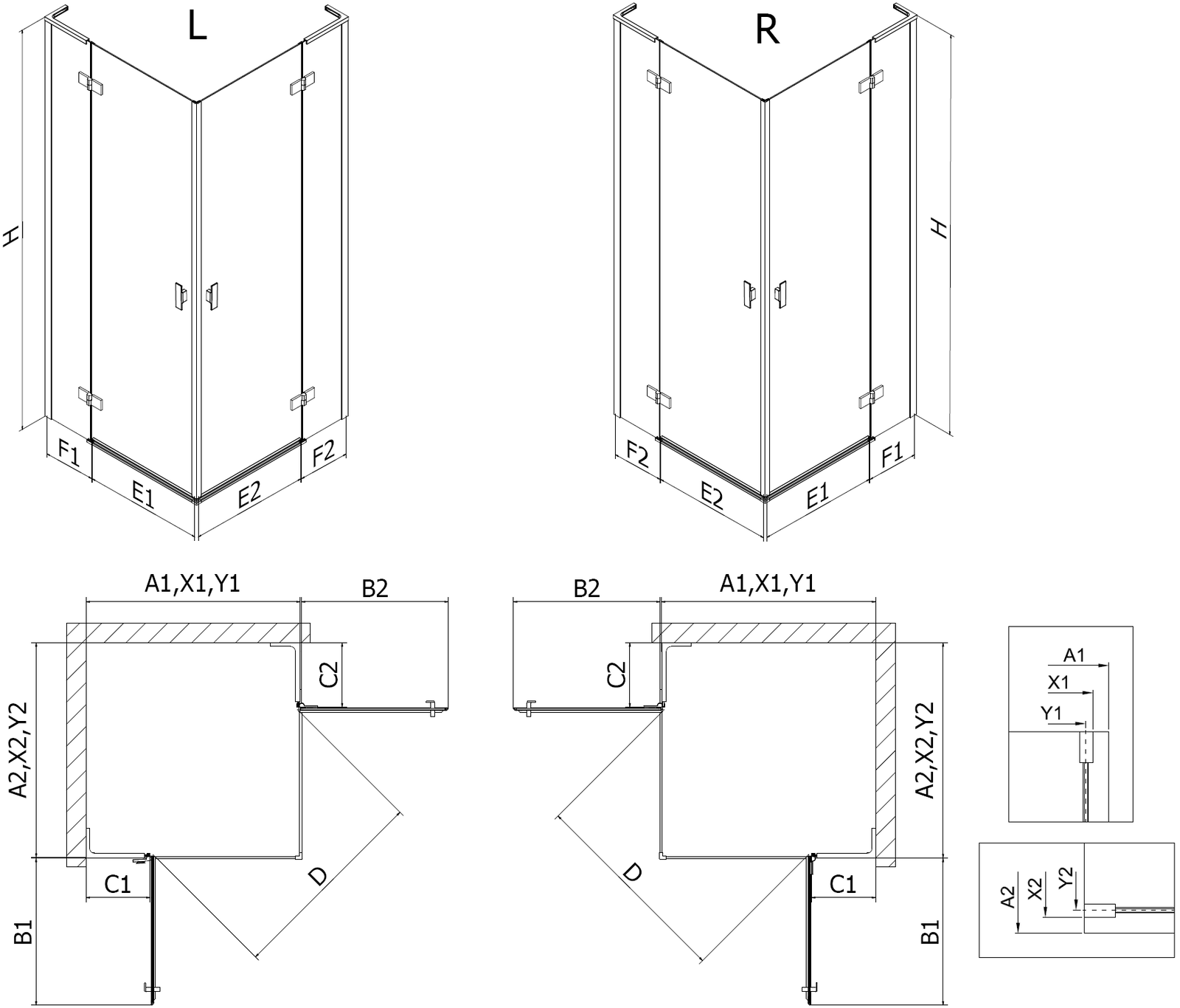 Sprchové kouty, dveře a stěny jsou standardně přizpůsobeny pro montáž na sprchové vaničky určitých rozměrů. Právě tyto rozměry jsou uvedeny v názvu nebo popisu výrobku. Je však třeba mít na paměti, že skutečné rozměry prvků se mohou mírně lišit od nominálních hodnot. V případě plánované instalace přímo na podlahu se doporučuje pečlivě zkontrolovat vnější rozměry a uspořádání prvků podle technického výkresu.