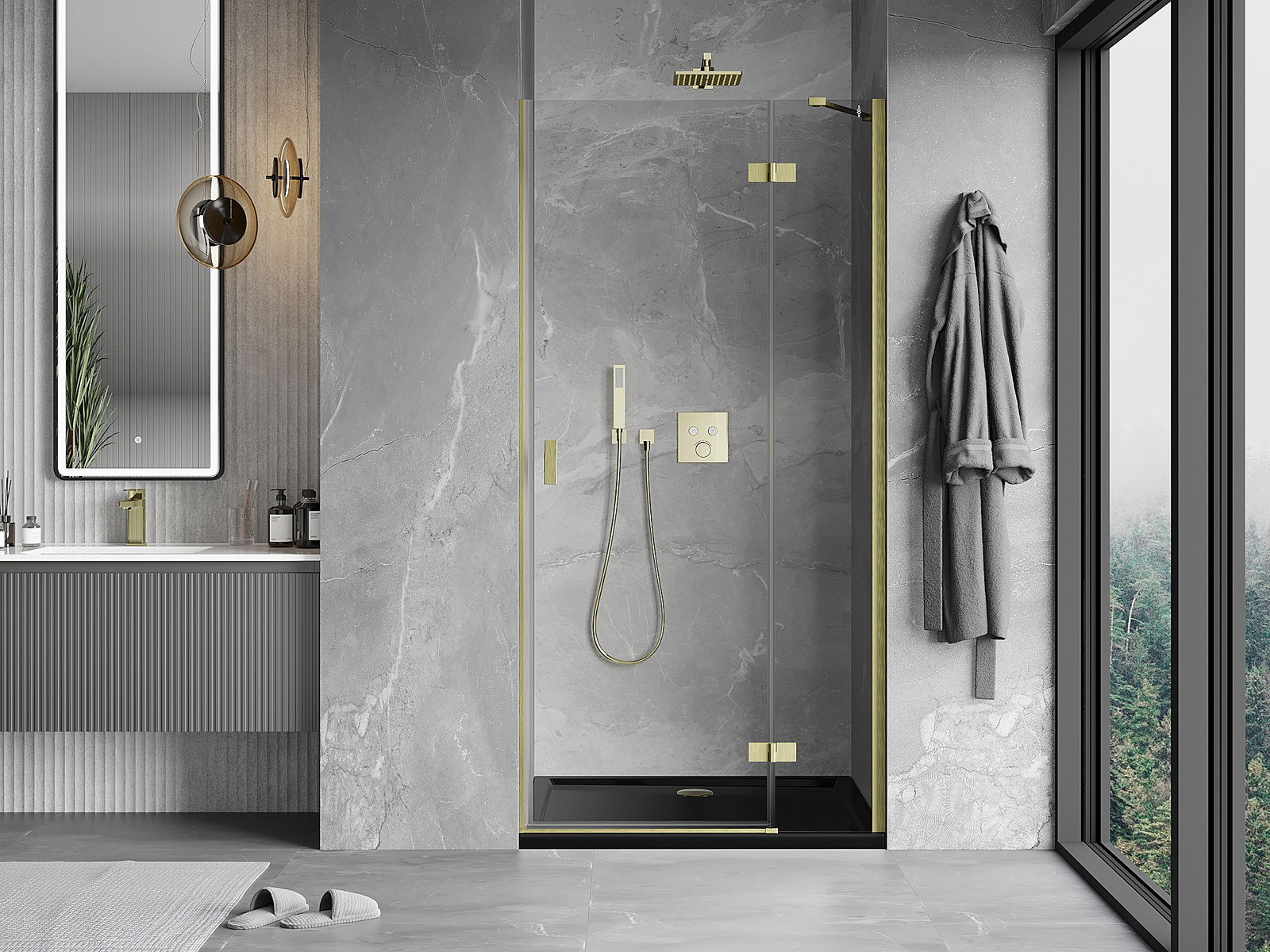 Mexen Mist-H sprchové dveře otočné pravé 70 cm, průhledné, zlaté kartáčované - 8A5-070-000-55-00-P
