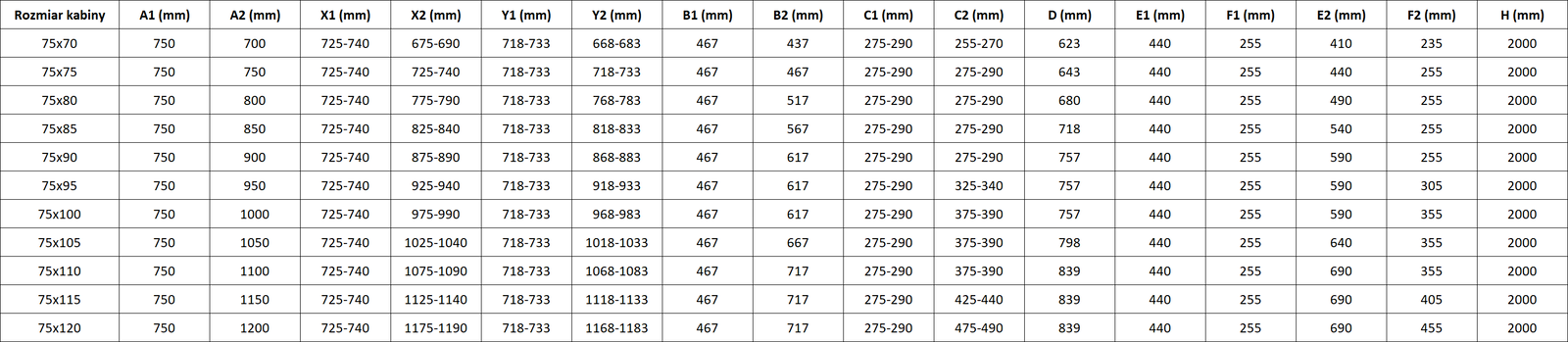 Sprchové kouty, dveře a stěny jsou standardně přizpůsobeny pro montáž na sprchové vaničky určitých rozměrů. Právě tyto rozměry jsou uvedeny v názvu nebo popisu výrobku. Je však třeba mít na paměti, že skutečné rozměry prvků se mohou mírně lišit od nominálních hodnot. V případě plánované instalace přímo na podlahu se doporučuje pečlivě zkontrolovat vnější rozměry a uspořádání prvků podle technického výkresu.