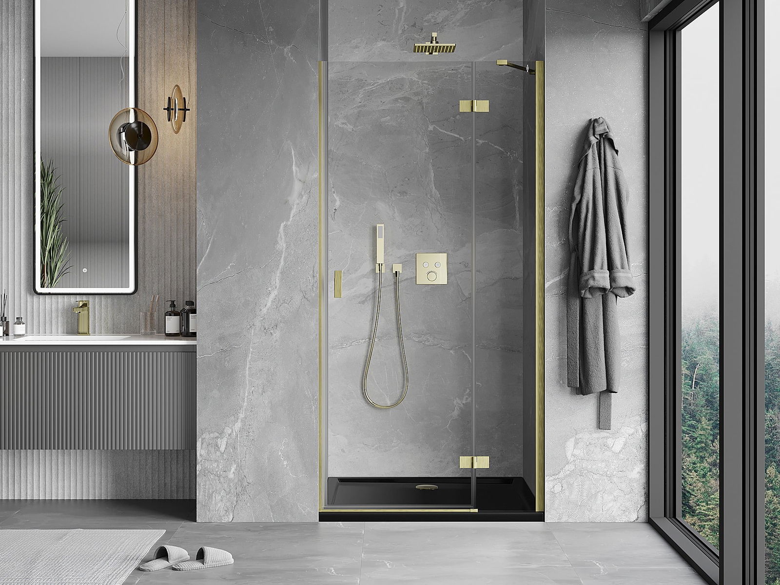Praktická a pohodlná rukojeť je vyrobena z odolného a trvanlivého kovu. Moderní tvar ve spojení s povrchovou úpravou, která ladí s barvou profilů, dodává celku moderní a stylový vzhled, zdůrazňující estetiku každé koupelny.