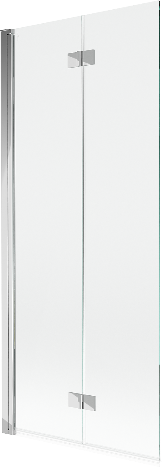 Paravan vyrobený ze dvou křídel s možností složení. Takové řešení umožňuje ušetřit více místa v koupelně a umožňuje volné využití zbývajícího prostoru, když nepoužíváme koupací zónu.