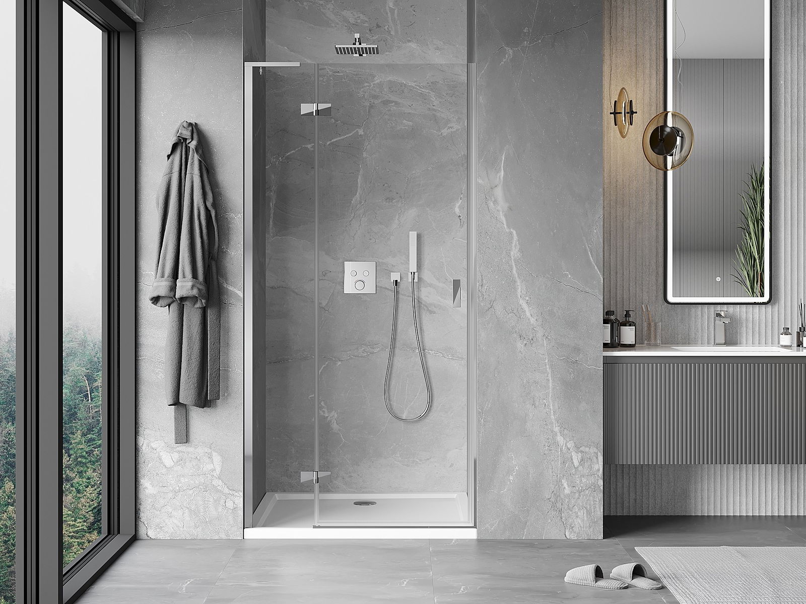 Otevírací dveře umožňují maximální svobodu při používání. Mají pevné panty vyrobené z odolného materiálu, které se snadno čistí a umožňují snadný přístup do interiéru kabiny.