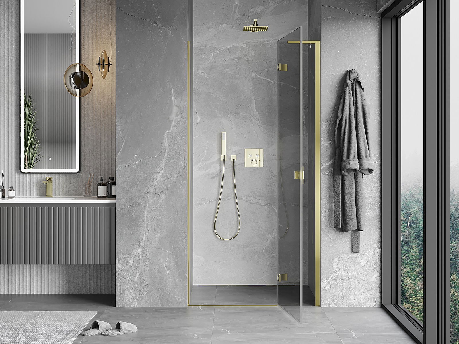 Praktická a pohodlná rukojeť je vyrobena z odolného a trvanlivého kovu. Moderní tvar ve spojení s povrchovou úpravou, která ladí s barvou profilů, dodává celku moderní a stylový vzhled, zdůrazňující estetiku každé koupelny.