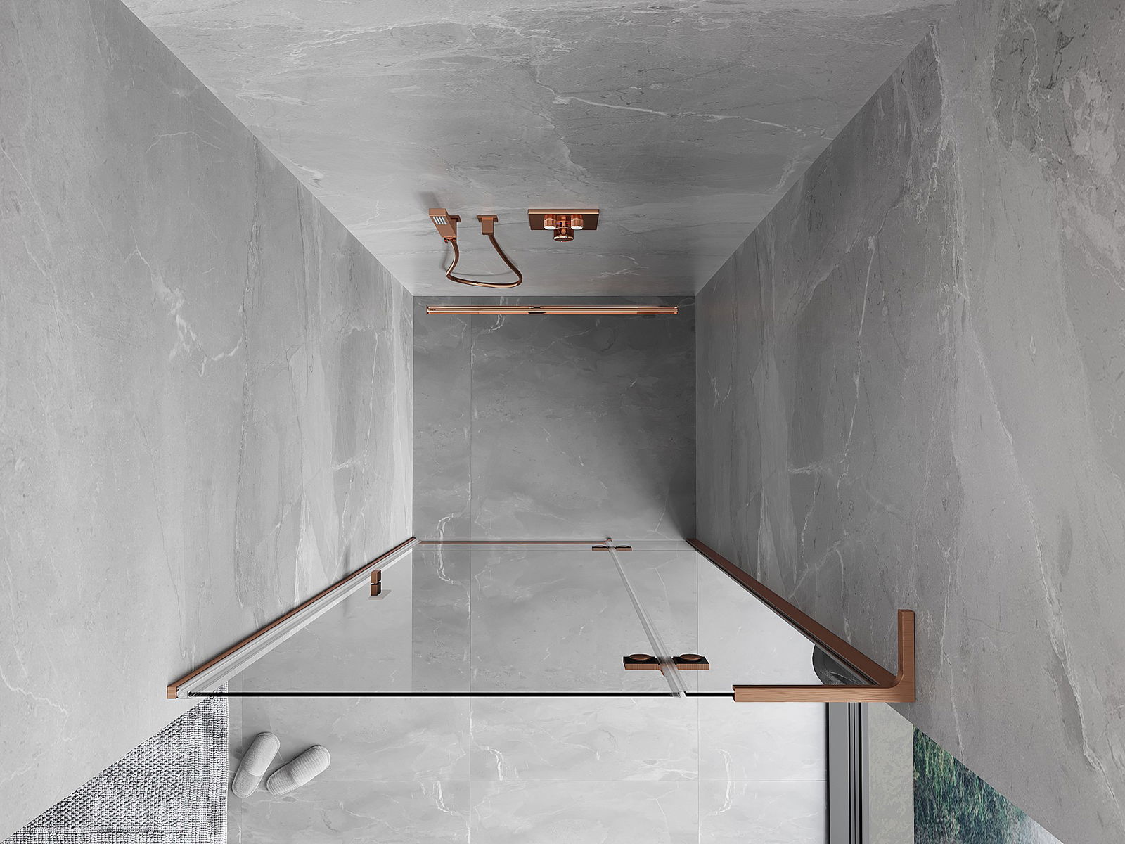 Mexen Mist-H L sprchové dveře výklopné pravé 95 cm, transparentní, kartáčovaná měď - 8A5L-095-000-65-00-P