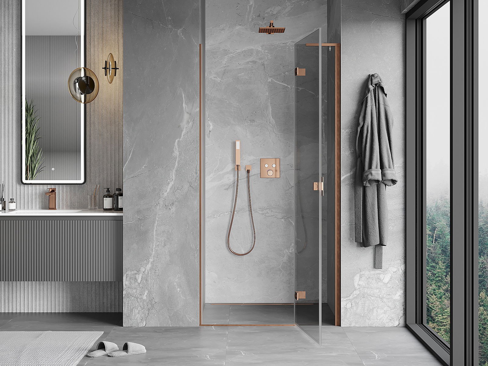 Praktická a pohodlná rukojeť je vyrobena z odolného a trvanlivého kovu. Moderní tvar ve spojení s povrchovou úpravou, která ladí s barvou profilů, dodává celku moderní a stylový vzhled, zdůrazňující estetiku každé koupelny.
