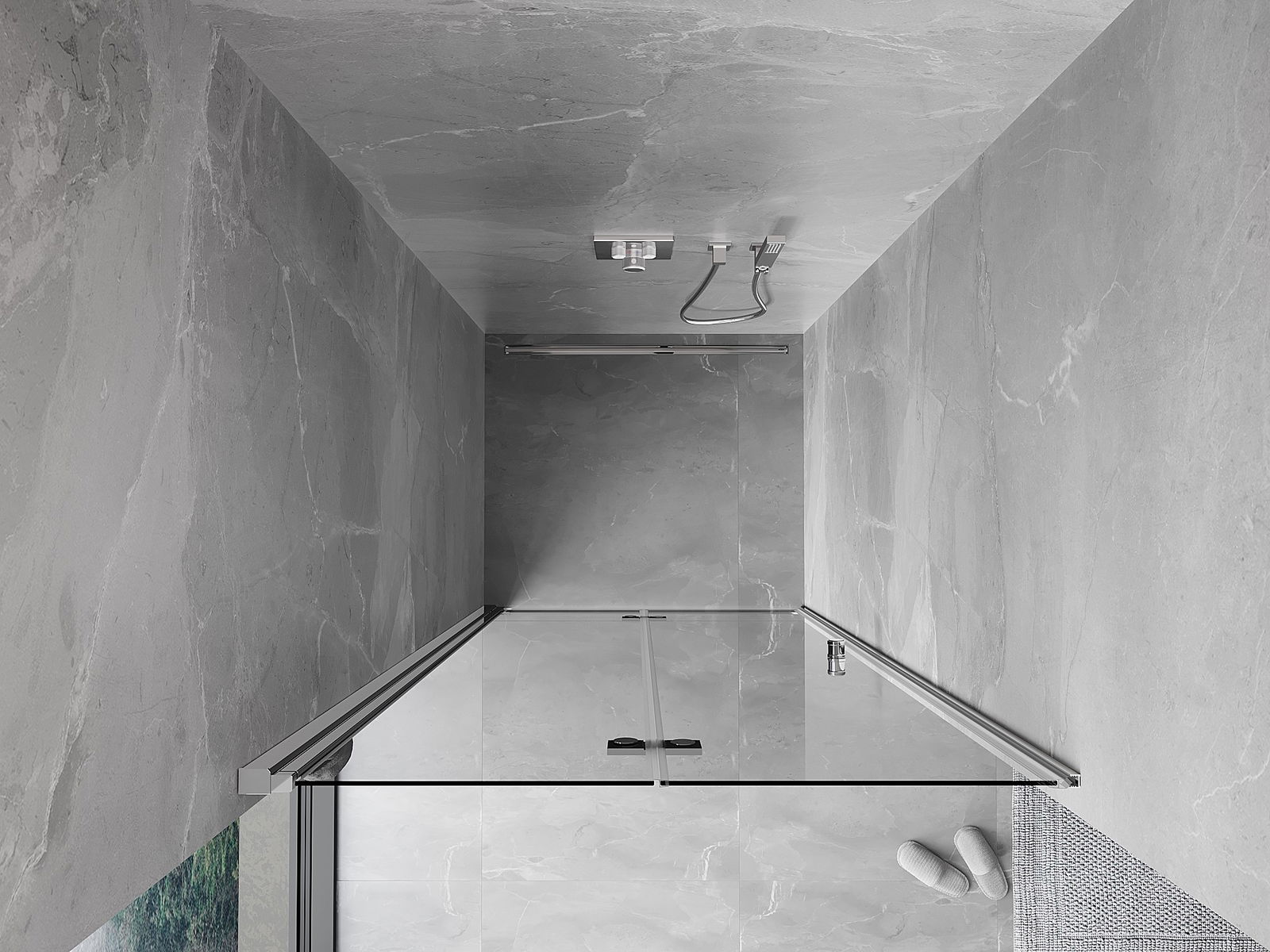 Možnost skládání dveří, jak dovnitř, tak ven, umožňuje získat více prostoru při nepoužívání sprchy. Je to ideální řešení pro menší koupelny, maximálně využívající dostupný prostor.