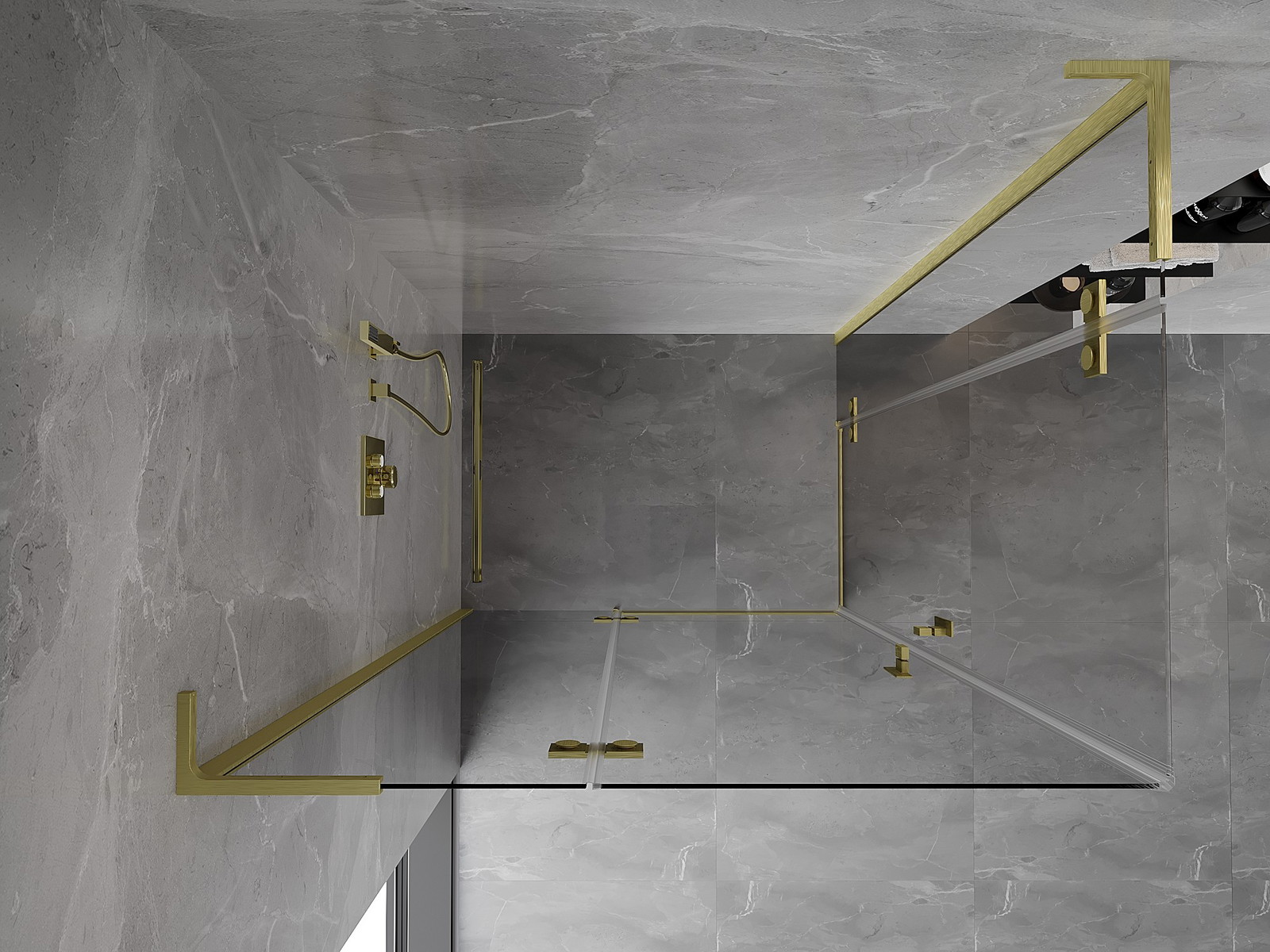 Mosazné závěsy zarovnané s tabulí skla