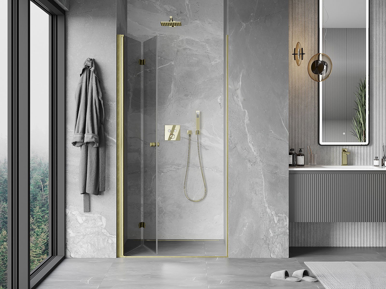 Mexen Mist-F skládací sprchové dveře levé 85 cm, transparentní, zlaté kartáčované - 8A6-085-000-55-00-L