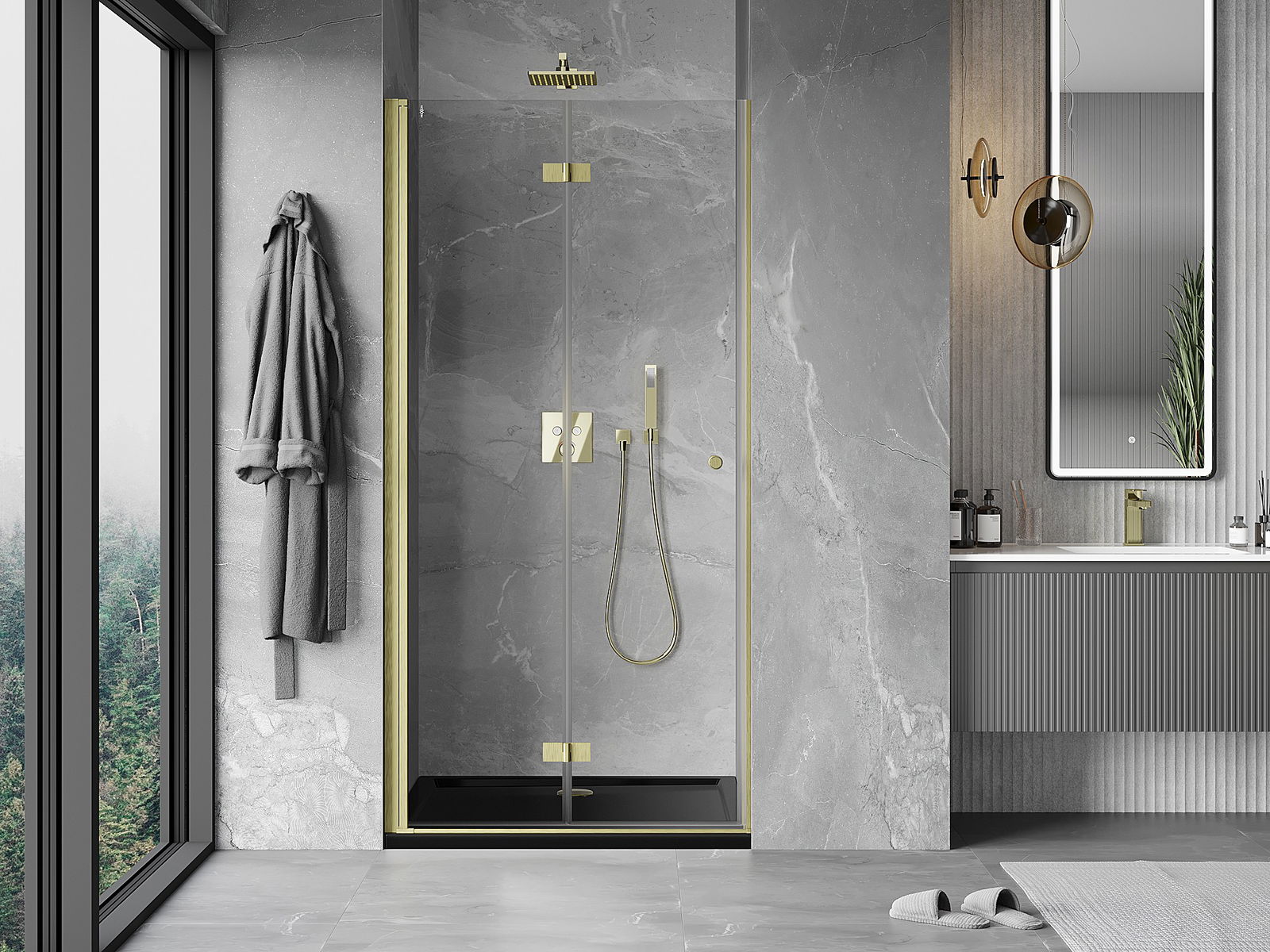 Mexen Mist-F skládací sprchové dveře levé 95 cm, transparentní, zlaté kartáčované - 8A6-095-000-55-00-L