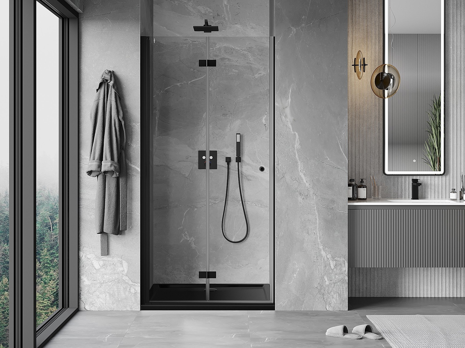 Možnost skládání dveří, jak dovnitř, tak ven, umožňuje získat více prostoru při nepoužívání sprchy. Je to ideální řešení pro menší koupelny, maximálně využívající dostupný prostor.