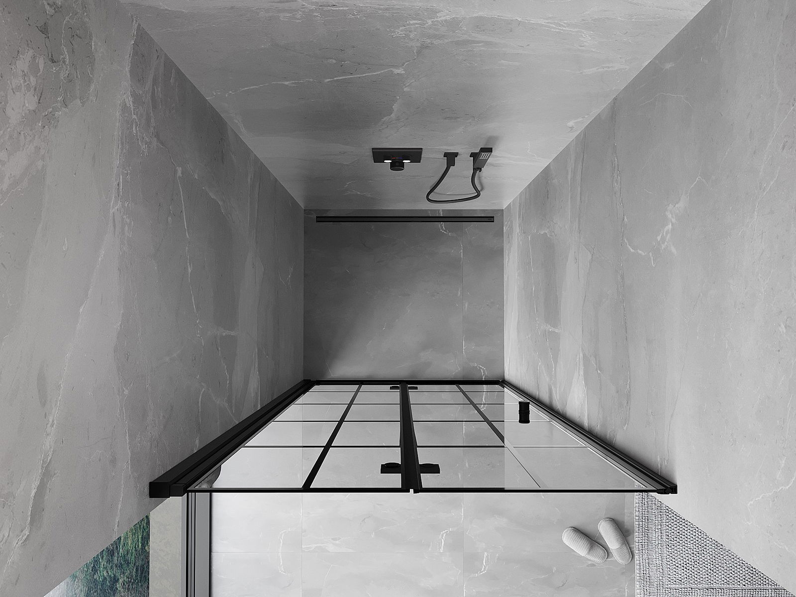 Mexen Mist-F skládací sprchové dveře levé 95 cm, černá mřížka, černé - 8A6-095-000-70-77-L