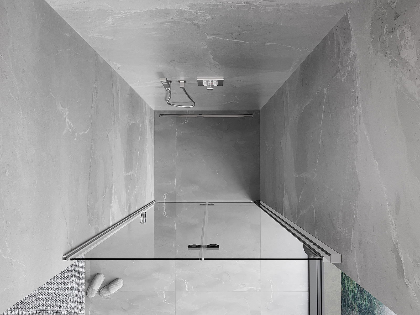 Možnost skládání dveří, jak dovnitř, tak ven, umožňuje získat více prostoru při nepoužívání sprchy. Je to ideální řešení pro menší koupelny, maximálně využívající dostupný prostor.