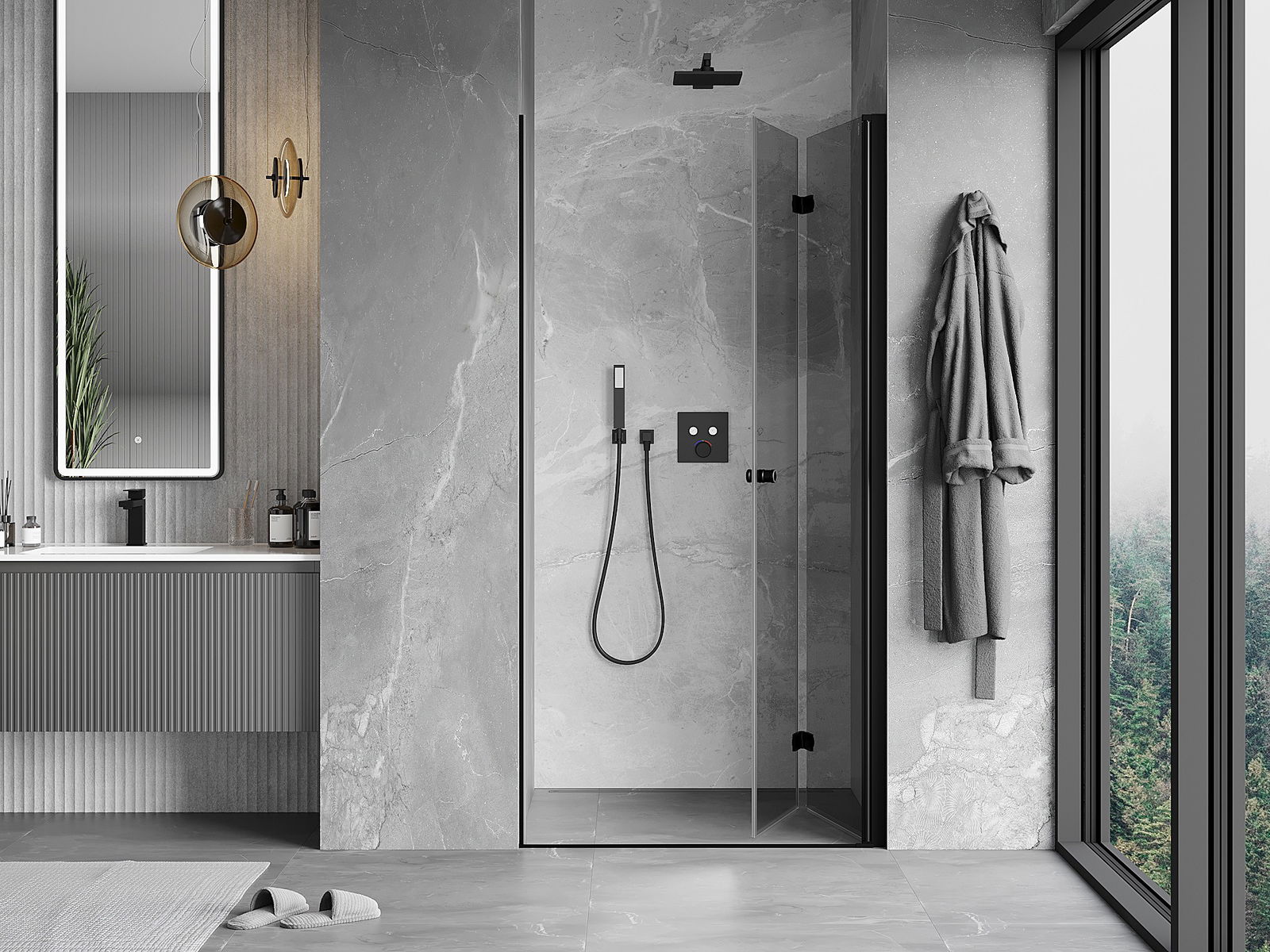 Možnost skládání dveří, jak dovnitř, tak ven, umožňuje získat více prostoru při nepoužívání sprchy. Je to ideální řešení pro menší koupelny, maximálně využívající dostupný prostor.