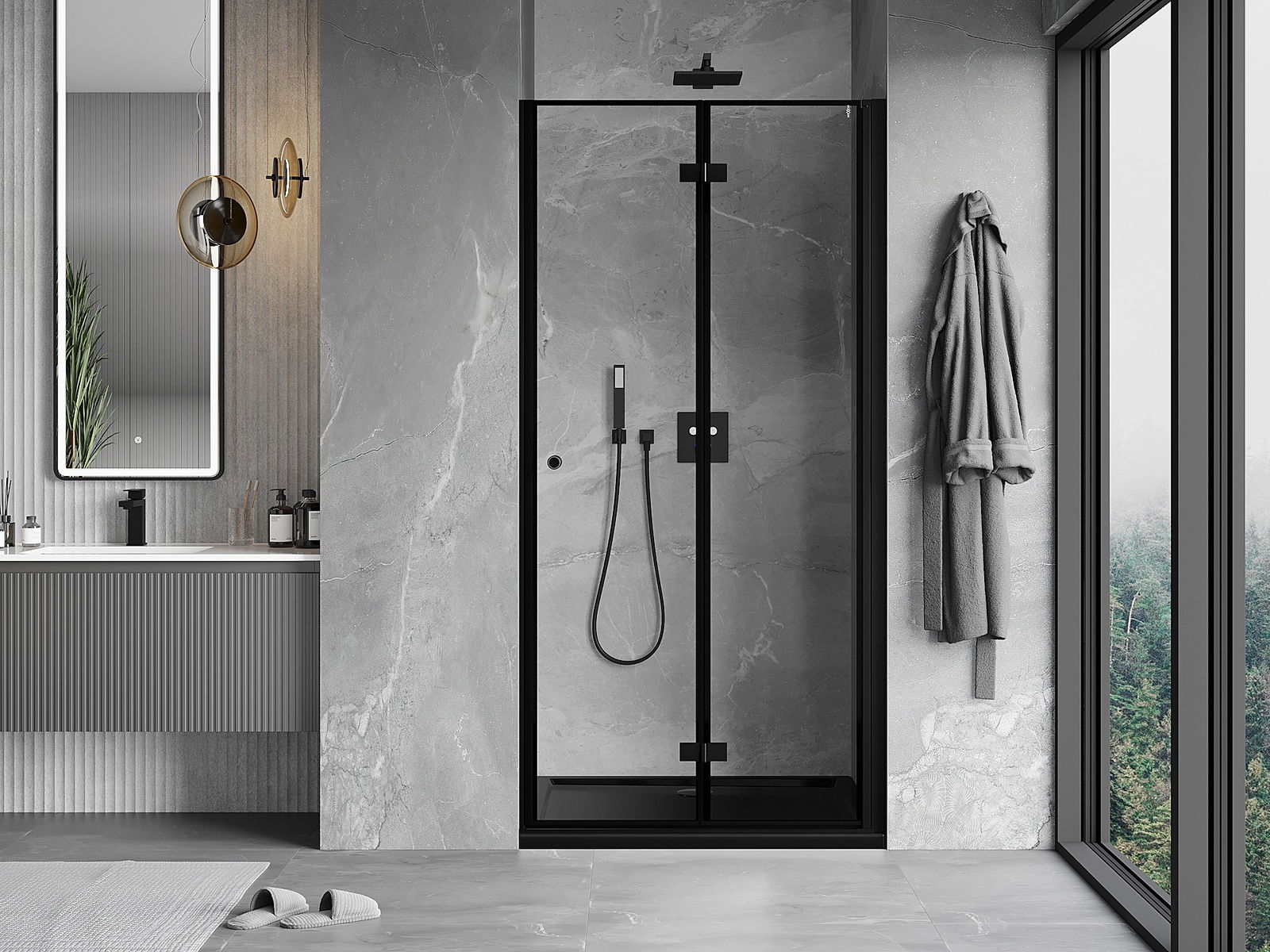 Možnost skládání dveří, jak dovnitř, tak ven, umožňuje získat více prostoru při nepoužívání sprchy. Je to ideální řešení pro menší koupelny, maximálně využívající dostupný prostor.