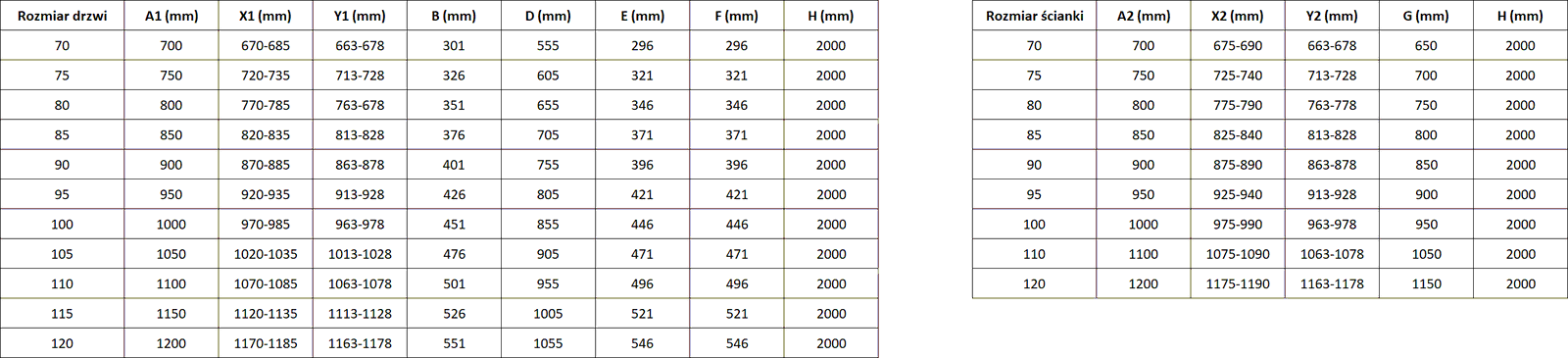 Rozměr: 100x120 cm (pravé dveře 100 cm, stěna 120 cm)
