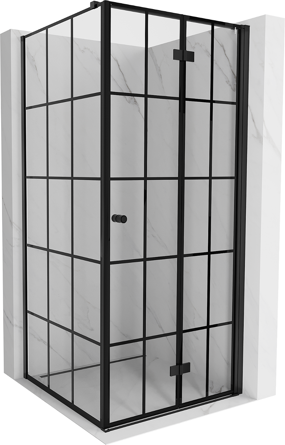Mexen Mist-F skládací sprchový kout pravý 95 x 95 cm, černá mřížka, černá - 8A6T-095-095-70-77-P