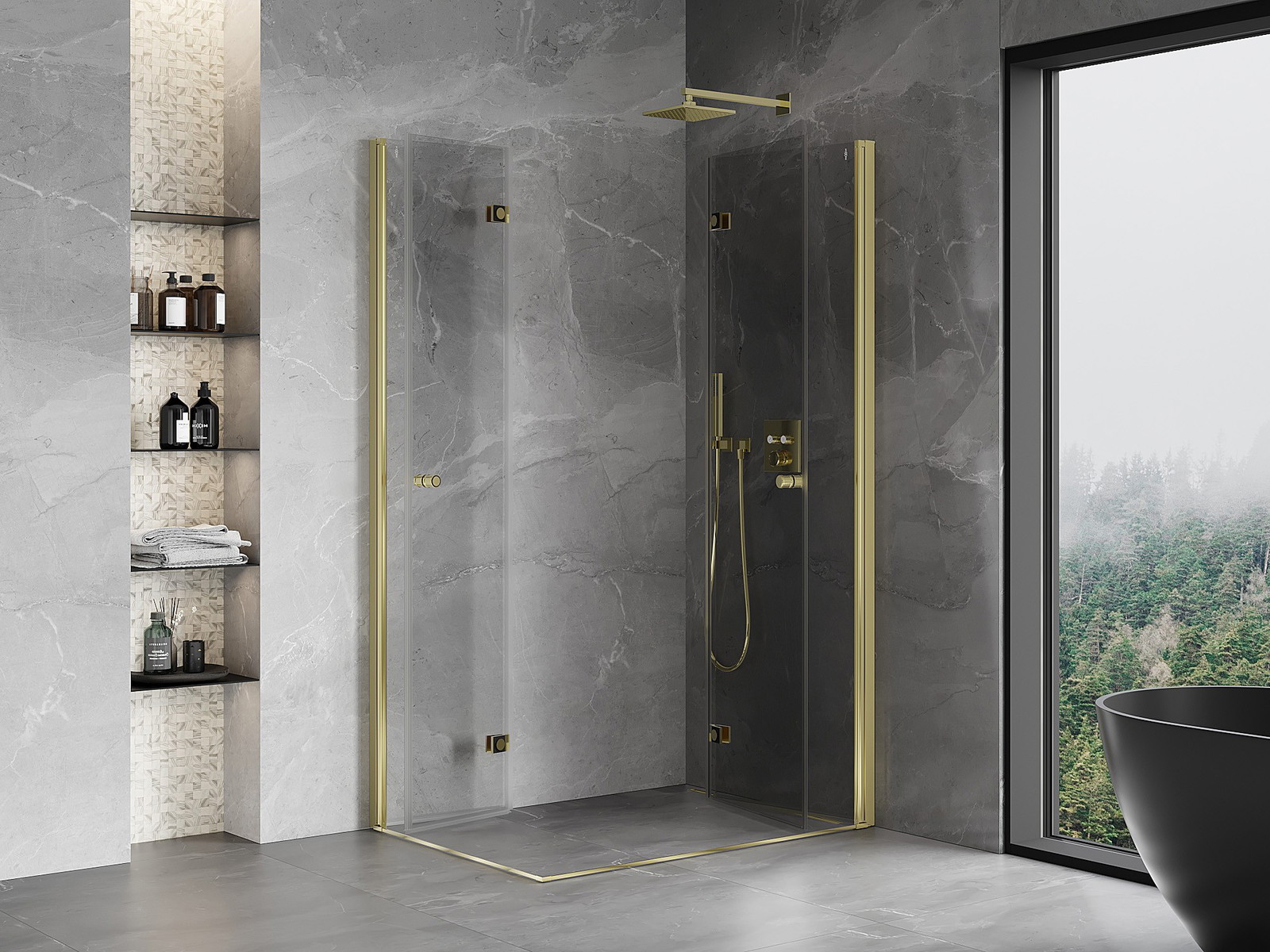 Mexen Mist-F Duo skládací sprchový kout pravý 95 x 110 cm, transparentní, zlatý - 8A6-095L-110P-50-00