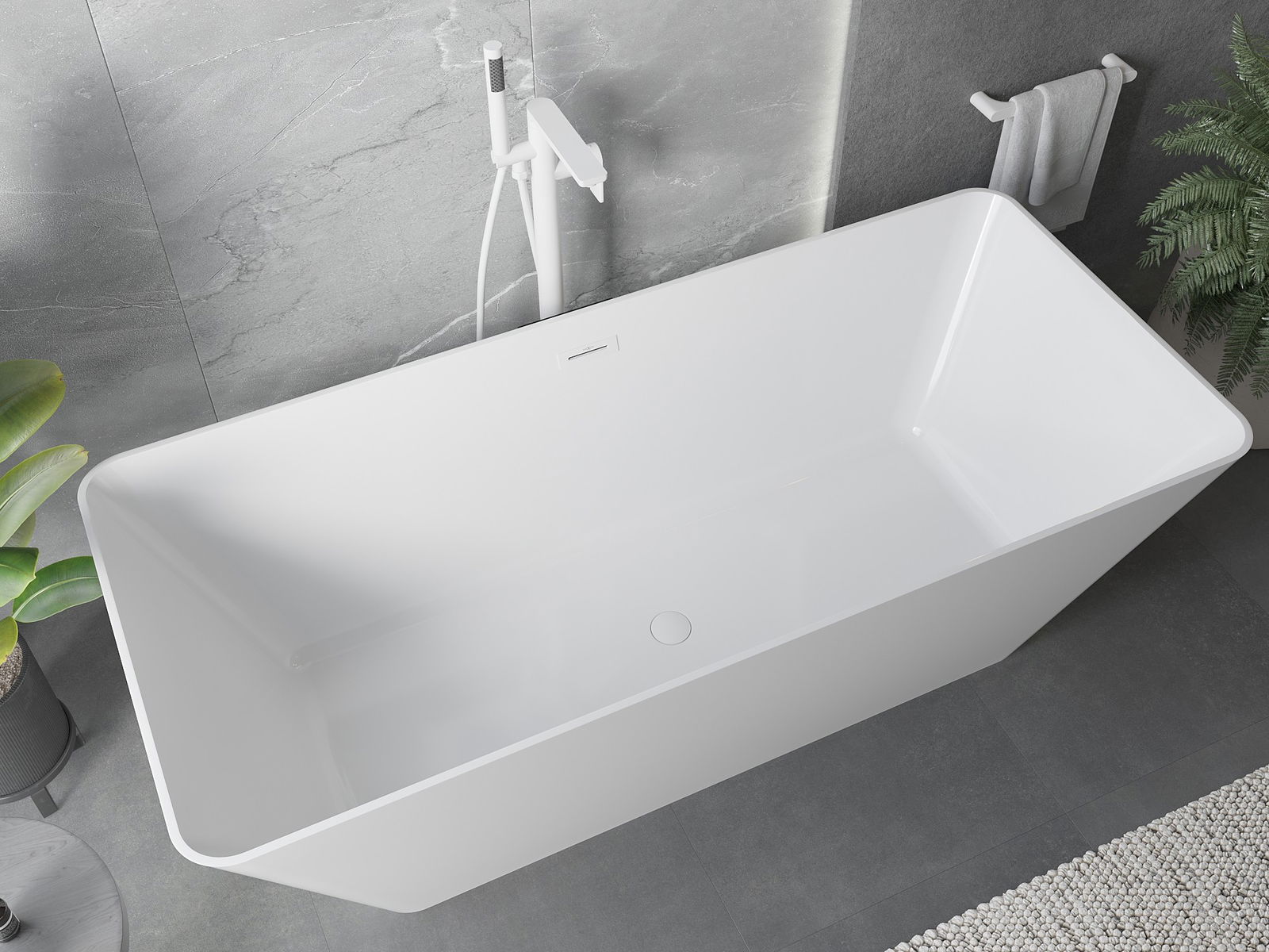 Jedná se o moderní materiál spojující elegantní vzhled s vysokou odolností. Je odolný vůči mechanickému poškození, snadno se čistí a je příjemný na dotek. Průhledná forma a tenký okraj vany jí dodávají lehkost a jedinečný charakter, čímž vytvářejí působivý prvek v uspořádání koupelny.