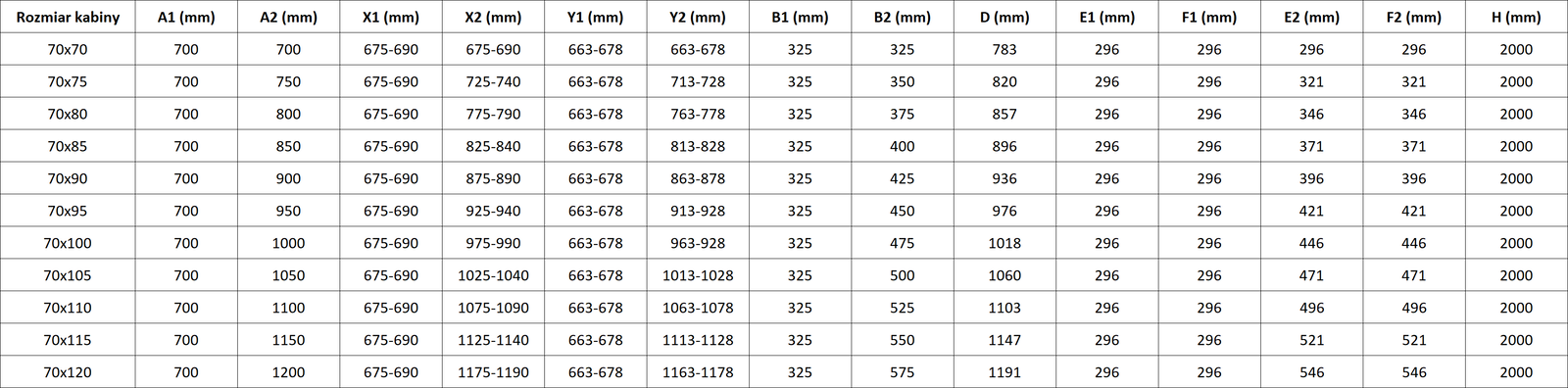 Sprchové kouty, dveře a stěny jsou standardně přizpůsobeny pro montáž na sprchové vaničky určitých rozměrů. Právě tyto rozměry jsou uvedeny v názvu nebo popisu výrobku. Je však třeba mít na paměti, že skutečné rozměry prvků se mohou mírně lišit od nominálních hodnot. V případě plánované instalace přímo na podlahu se doporučuje pečlivě zkontrolovat vnější rozměry a uspořádání prvků podle technického výkresu.