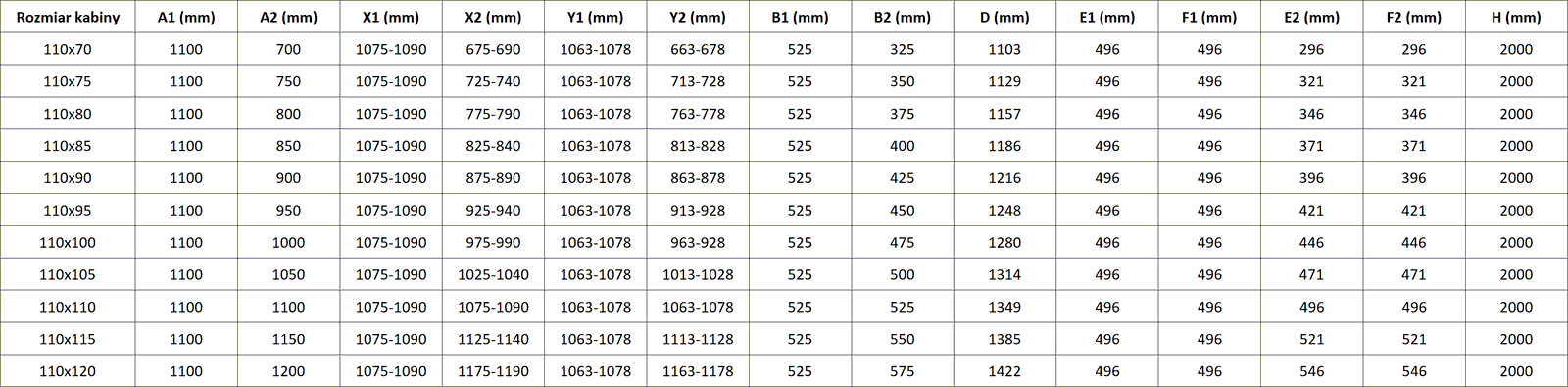 Rozměr: 110x80 cm (levé dveře 110 cm, pravé dveře 80 cm)