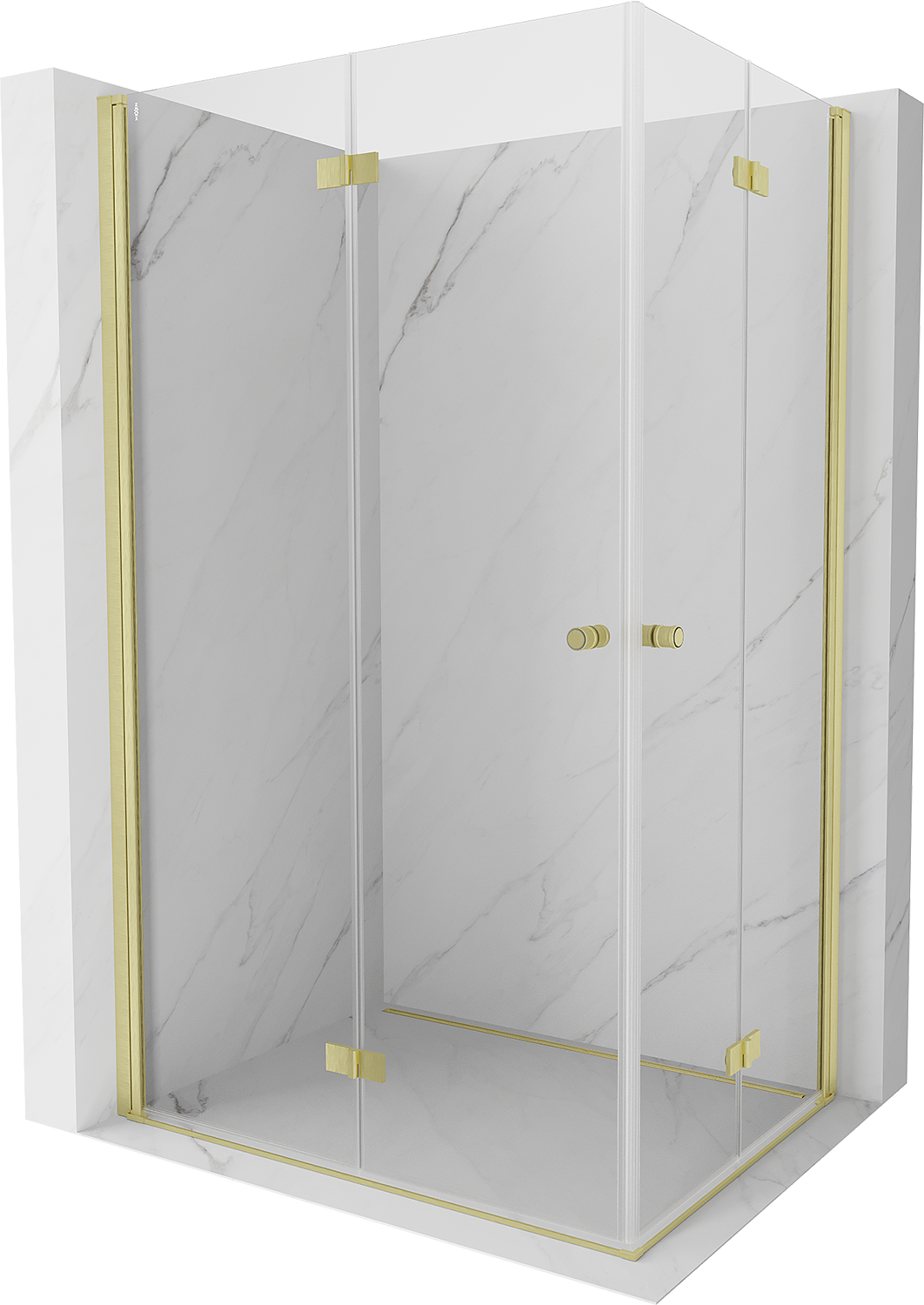 Mexen Mist-F Duo skládací sprchový kout levý 95 x 85 cm, transparentní, zlatý kartáčovaný - 8A6-095L-085P-55-00