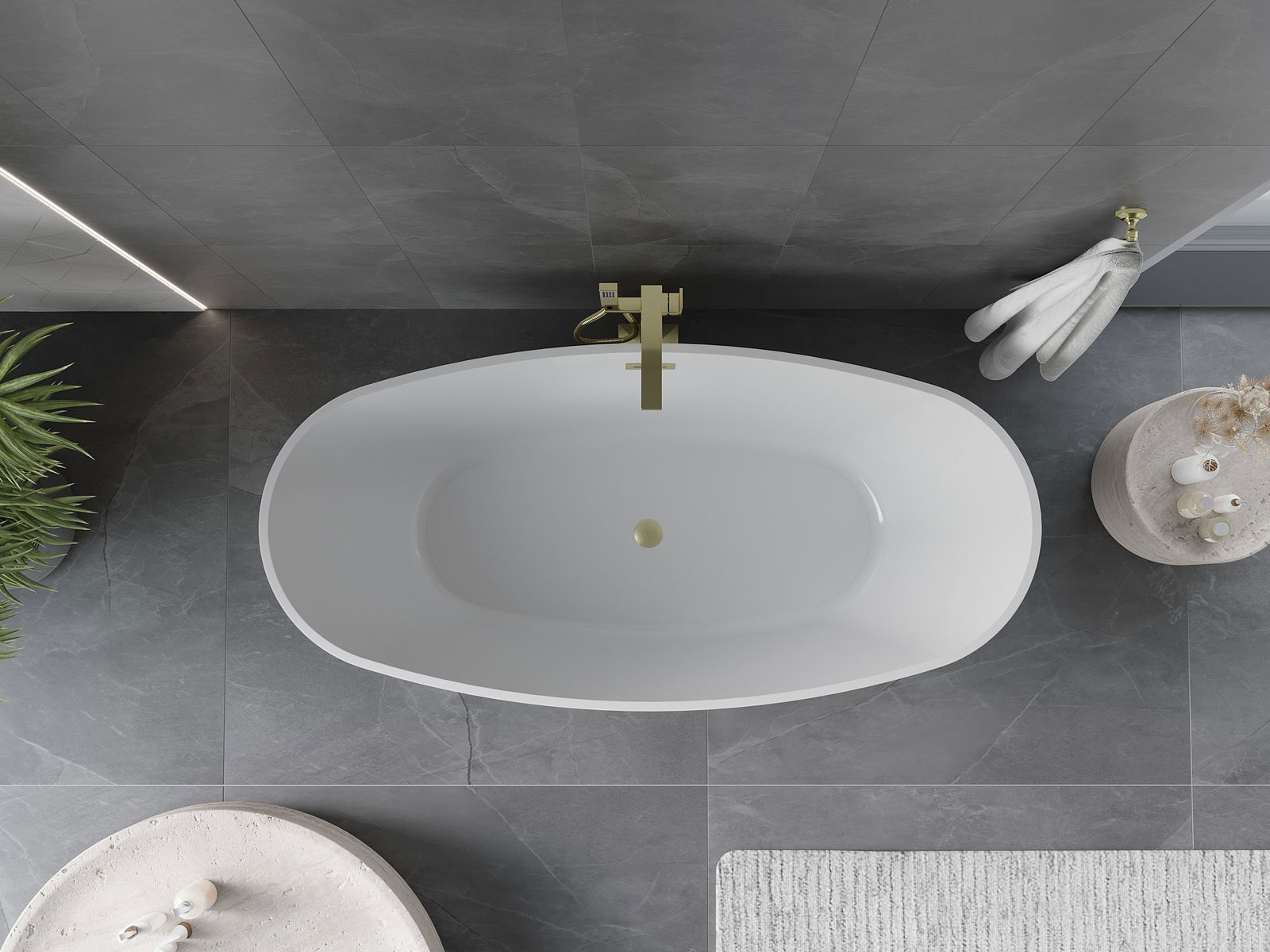 Jedná se o moderní materiál spojující elegantní vzhled s vysokou odolností. Je odolný vůči mechanickému poškození, snadno se čistí a je příjemný na dotek. Průhledná forma a tenký okraj vany jí dodávají lehkost a jedinečný charakter, čímž vytvářejí působivý prvek v uspořádání koupelny.