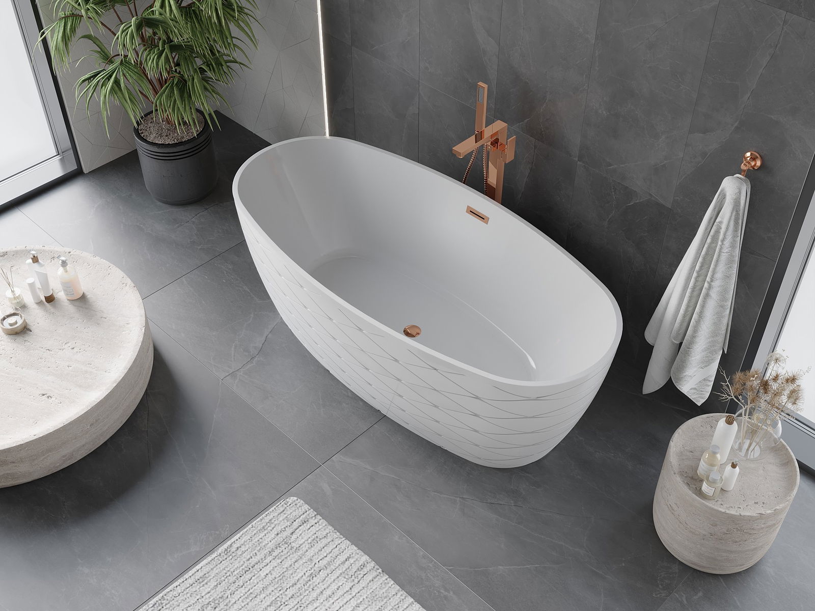 Jedná se o moderní materiál spojující elegantní vzhled s vysokou odolností. Je odolný vůči mechanickému poškození, snadno se čistí a je příjemný na dotek. Průhledná forma a tenký okraj vany jí dodávají lehkost a jedinečný charakter, čímž vytvářejí působivý prvek v uspořádání koupelny.