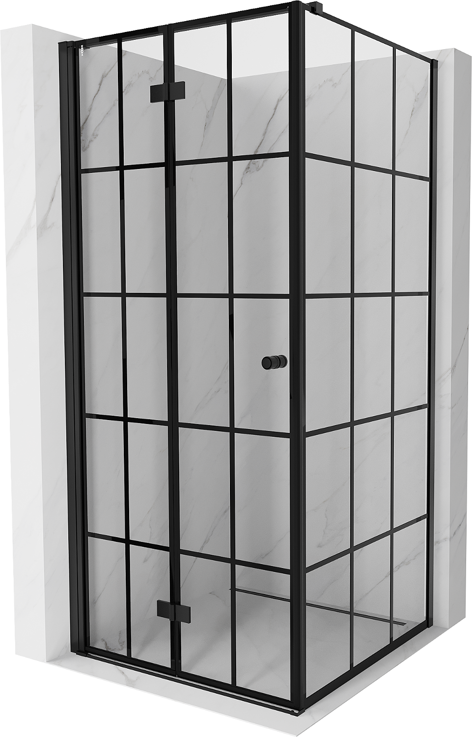 Mexen Mist-F skládací sprchový kout levý 70 x 70 cm, černá mřížka, černý - 8A6T-070-070-70-77-L