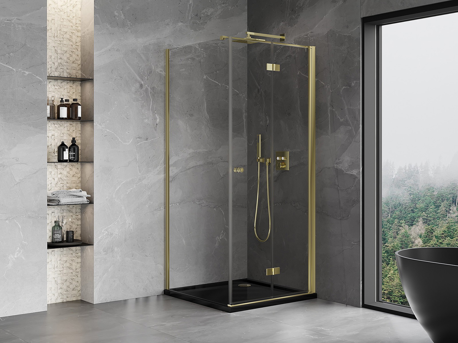 Mexen Mist-F skládací sprchový kout pravý 95 x 95 cm, transparentní, zlatý - 8A6T-095-095-50-00-P
