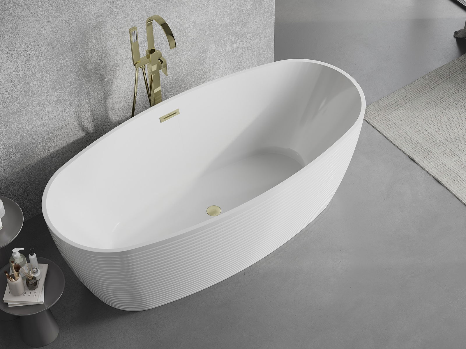 Jedná se o moderní materiál spojující elegantní vzhled s vysokou odolností. Je odolný vůči mechanickému poškození, snadno se čistí a je příjemný na dotek. Průhledná forma a tenký okraj vany jí dodávají lehkost a jedinečný charakter, čímž vytvářejí působivý prvek v uspořádání koupelny.