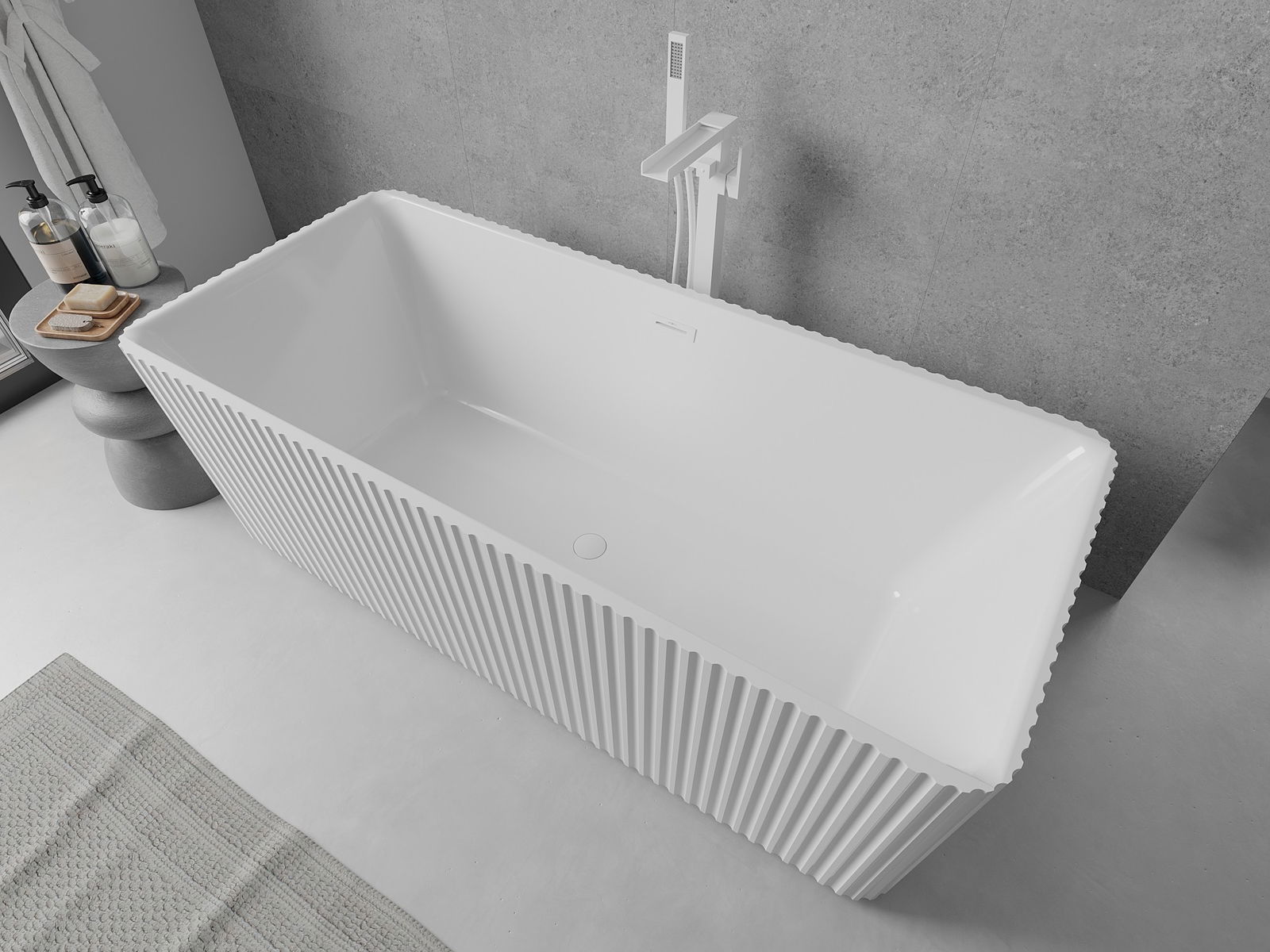 Jedná se o moderní materiál spojující elegantní vzhled s vysokou odolností. Je odolný vůči mechanickému poškození, snadno se čistí a je příjemný na dotek. Průhledná forma a tenký okraj vany jí dodávají lehkost a jedinečný charakter, čímž vytvářejí působivý prvek v uspořádání koupelny.