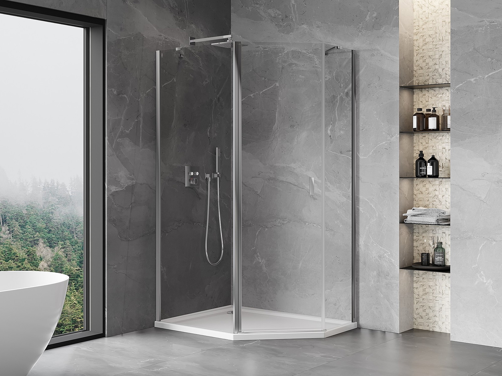 Mexen Mist pětiúhelníková asymetrická sprchová kabina 90 x 80 cm, transparent, chrom - 8A8-090-080-01-00