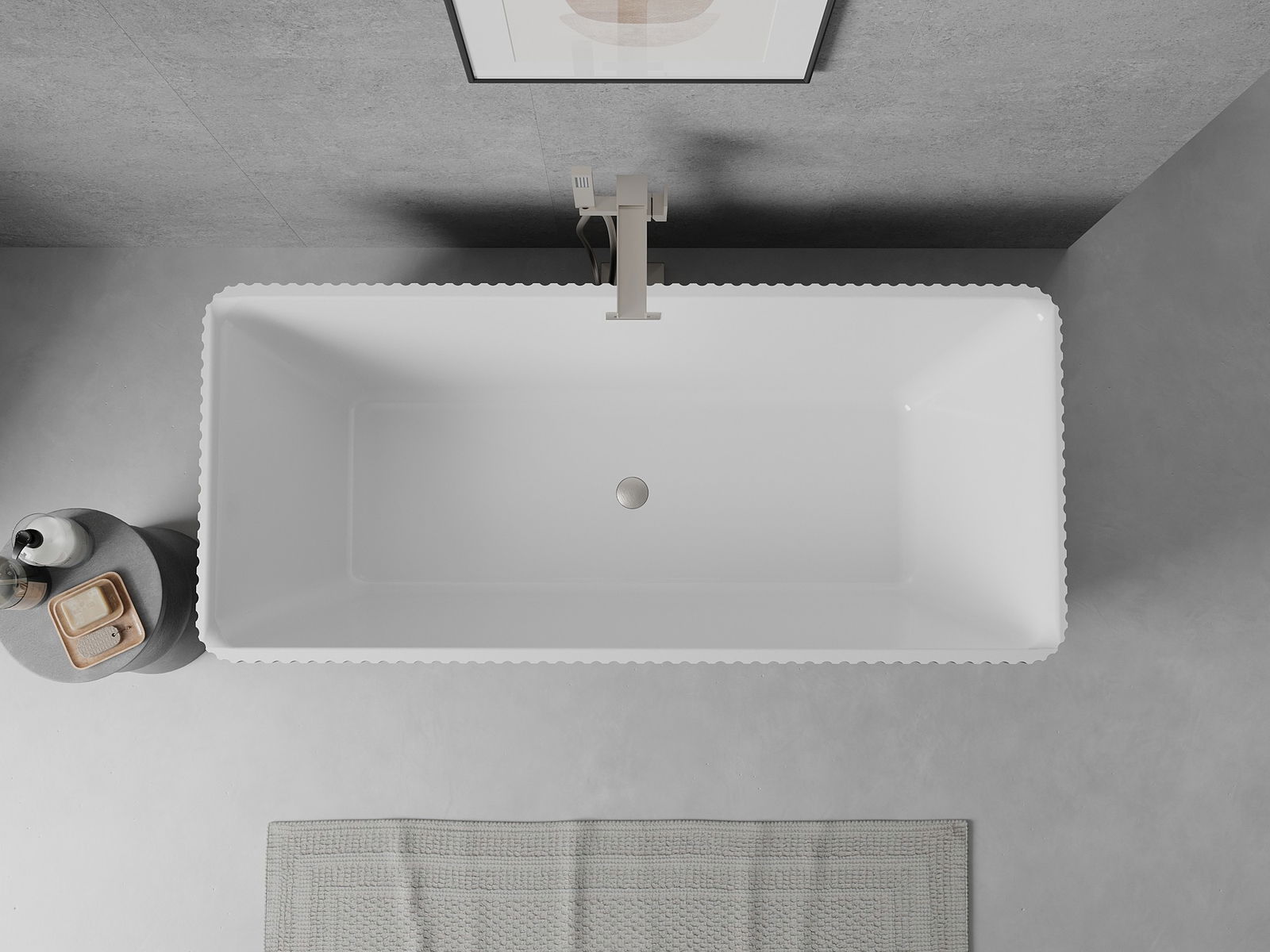 Jedná se o moderní materiál spojující elegantní vzhled s vysokou odolností. Je odolný vůči mechanickému poškození, snadno se čistí a je příjemný na dotek. Průhledná forma a tenký okraj vany jí dodávají lehkost a jedinečný charakter, čímž vytvářejí působivý prvek v uspořádání koupelny.