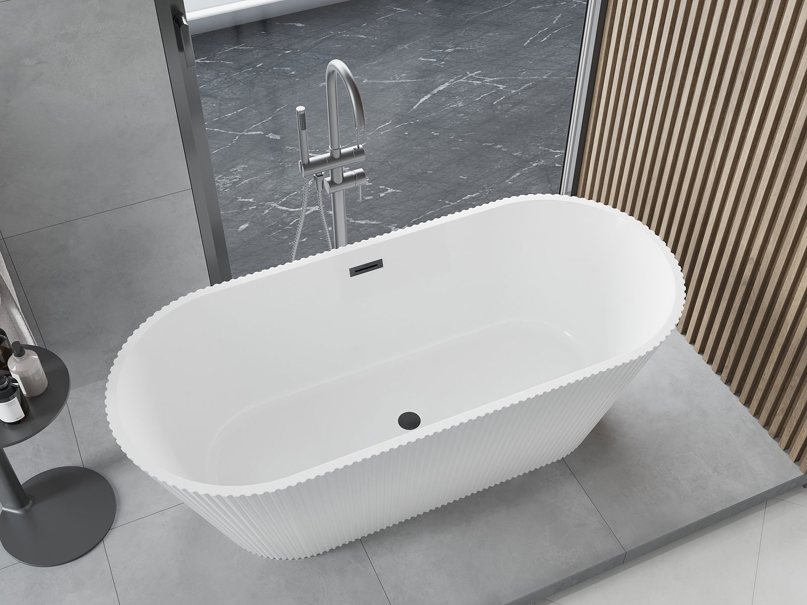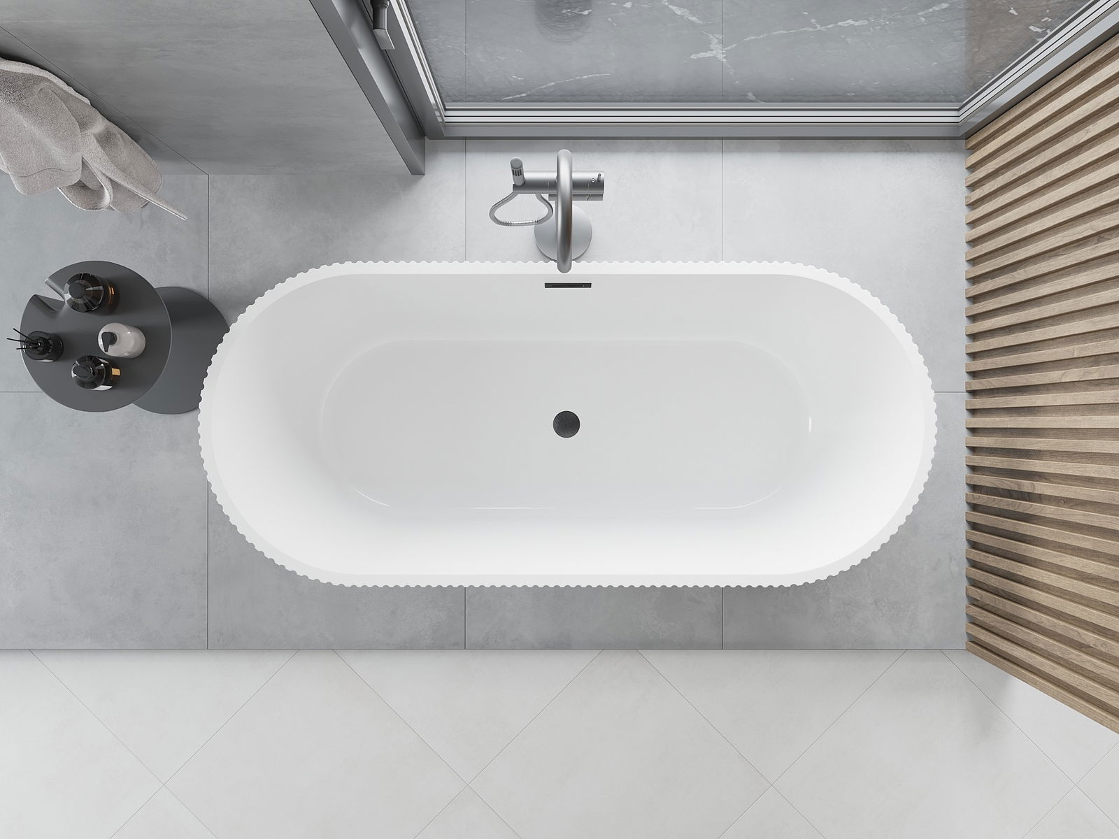 Jedná se o moderní materiál spojující elegantní vzhled s vysokou odolností. Je odolný vůči mechanickému poškození, snadno se čistí a je příjemný na dotek. Průhledná forma a tenký okraj vany jí dodávají lehkost a jedinečný charakter, čímž vytvářejí působivý prvek v uspořádání koupelny.