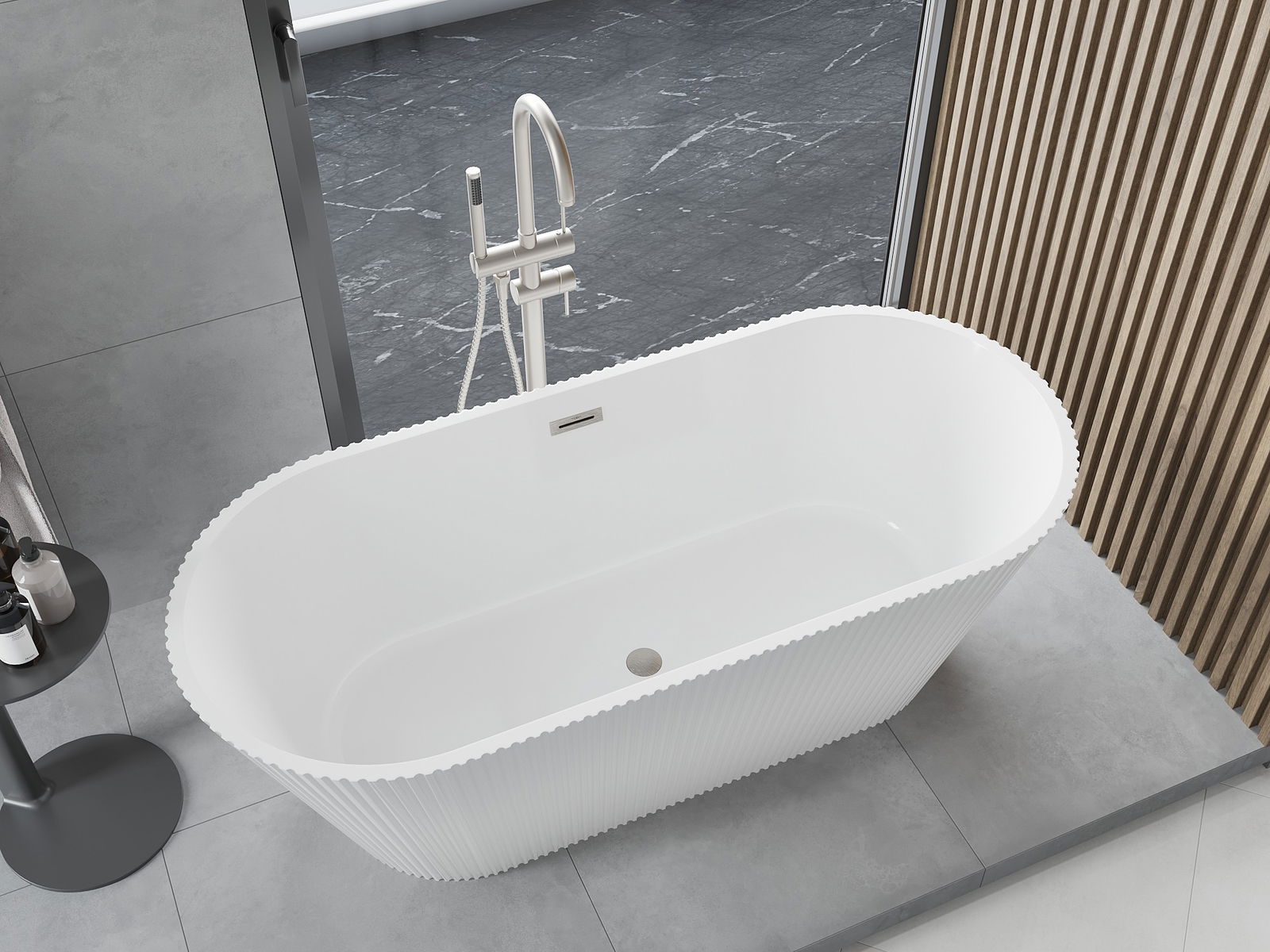 Jedná se o moderní materiál spojující elegantní vzhled s vysokou odolností. Je odolný vůči mechanickému poškození, snadno se čistí a je příjemný na dotek. Průhledná forma a tenký okraj vany jí dodávají lehkost a jedinečný charakter, čímž vytvářejí působivý prvek v uspořádání koupelny.