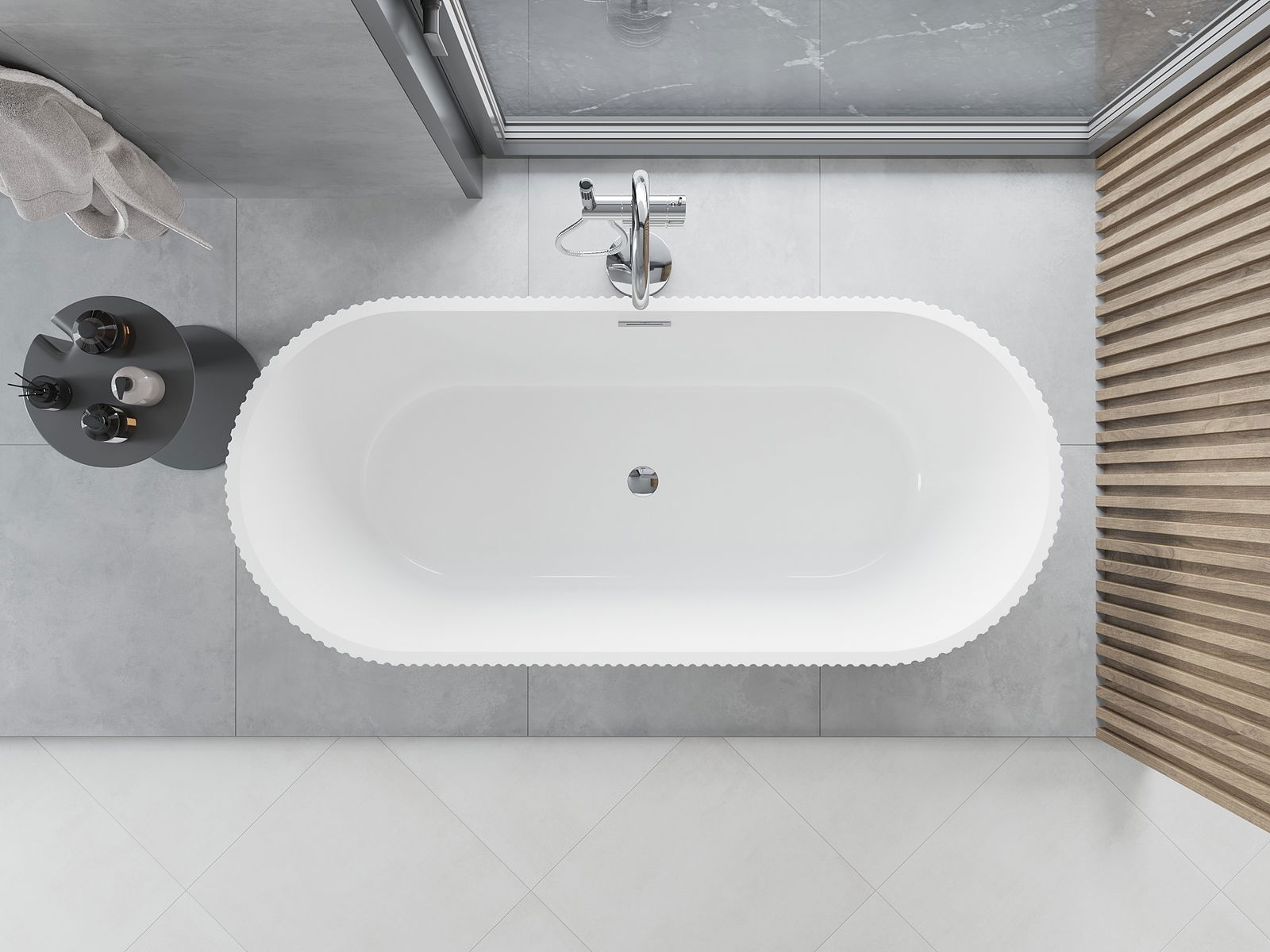 Jedná se o moderní materiál spojující elegantní vzhled s vysokou odolností. Je odolný vůči mechanickému poškození, snadno se čistí a je příjemný na dotek. Průhledná forma a tenký okraj vany jí dodávají lehkost a jedinečný charakter, čímž vytvářejí působivý prvek v uspořádání koupelny.