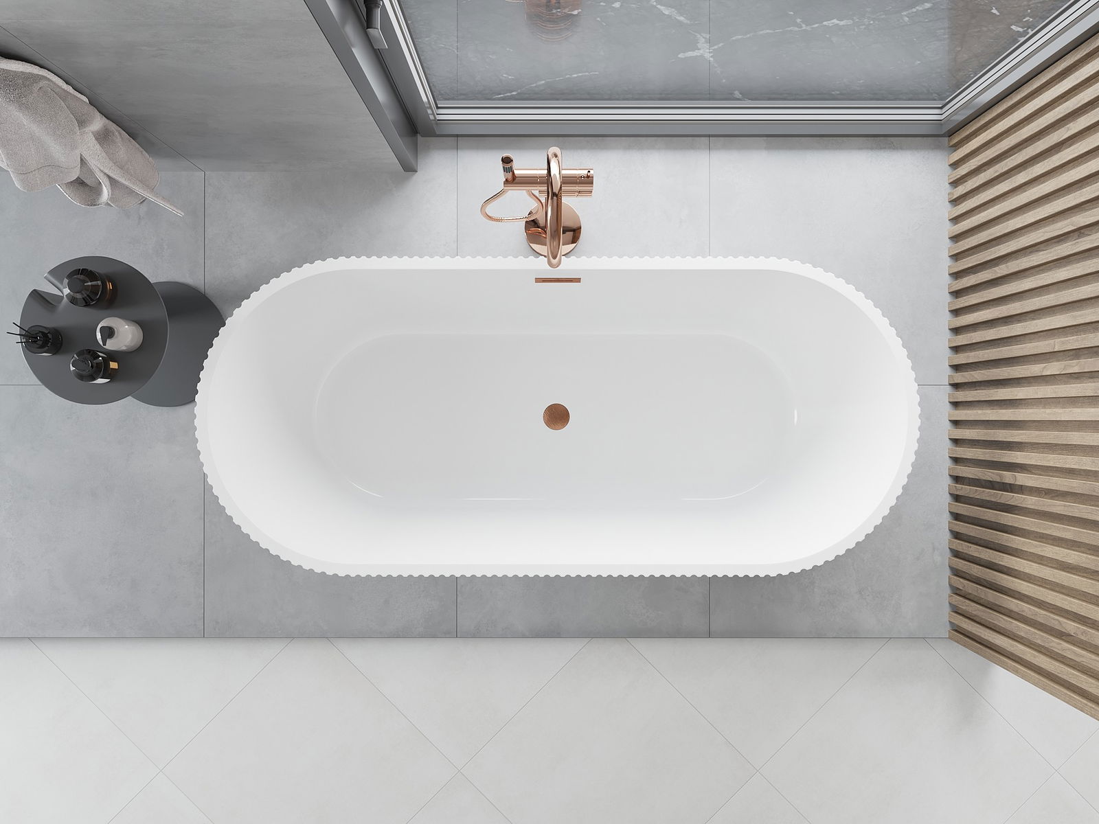 Jedná se o moderní materiál spojující elegantní vzhled s vysokou odolností. Je odolný vůči mechanickému poškození, snadno se čistí a je příjemný na dotek. Průhledná forma a tenký okraj vany jí dodávají lehkost a jedinečný charakter, čímž vytvářejí působivý prvek v uspořádání koupelny.
