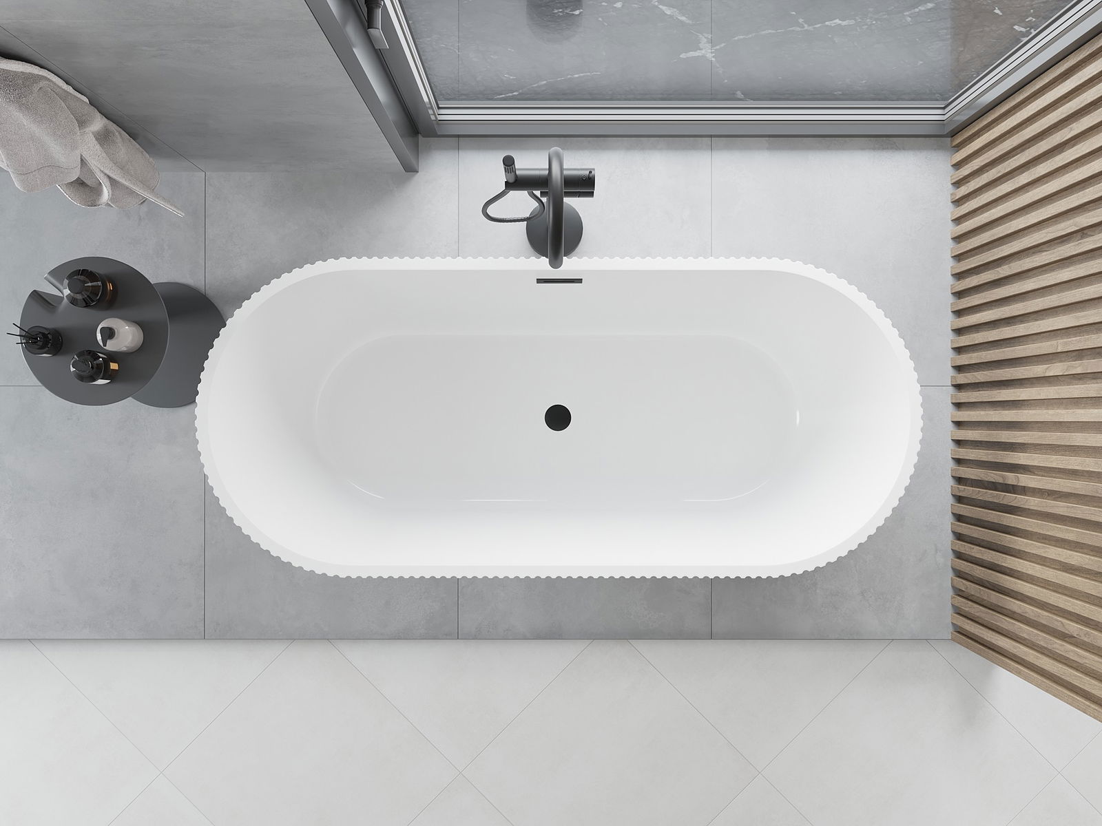 Jedná se o moderní materiál spojující elegantní vzhled s vysokou odolností. Je odolný vůči mechanickému poškození, snadno se čistí a je příjemný na dotek. Průhledná forma a tenký okraj vany jí dodávají lehkost a jedinečný charakter, čímž vytvářejí působivý prvek v uspořádání koupelny.