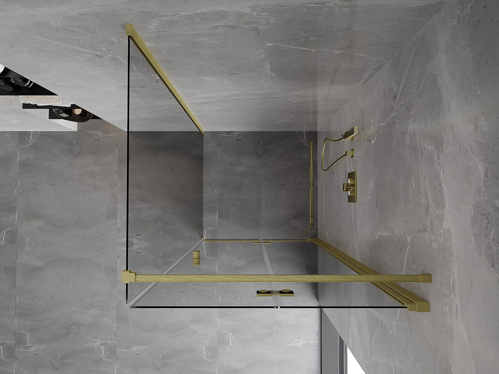 Mexen Mist-F skládací sprchová kabina pravá 80 x 80 cm, transparentní, zlatá kartáčovaná - 8A6T-080-080-55-00-P