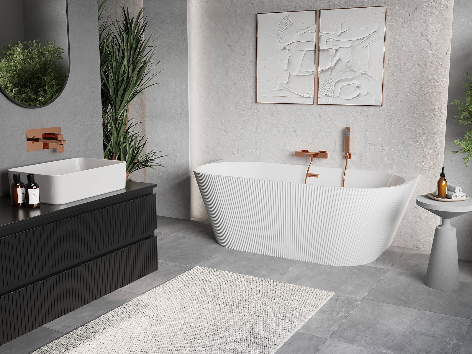 Jedná se o moderní materiál spojující elegantní vzhled s vysokou odolností. Je odolný vůči mechanickému poškození, snadno se čistí a je příjemný na dotek. Průhledná forma a tenký okraj vany jí dodávají lehkost a jedinečný charakter, čímž vytvářejí působivý prvek v uspořádání koupelny.