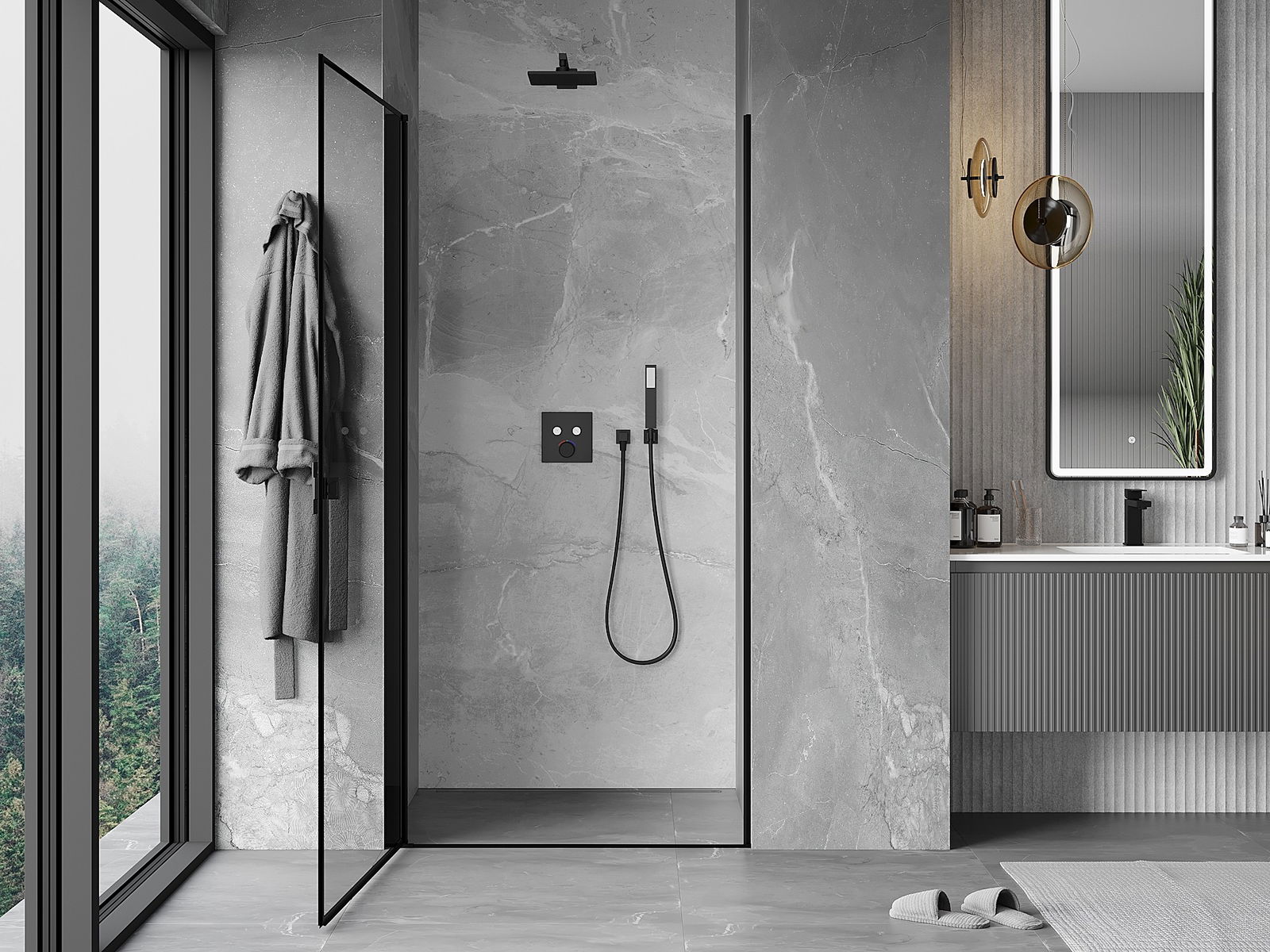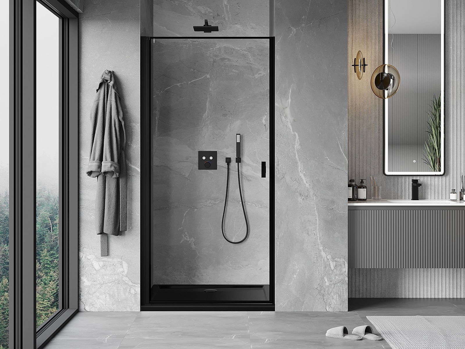 Praktická a pohodlná rukojeť je vyrobena z odolného a trvanlivého kovu. Moderní tvar ve spojení s povrchovou úpravou, která ladí s barvou profilů, dodává celku moderní a stylový vzhled, zdůrazňující estetiku každé koupelny.