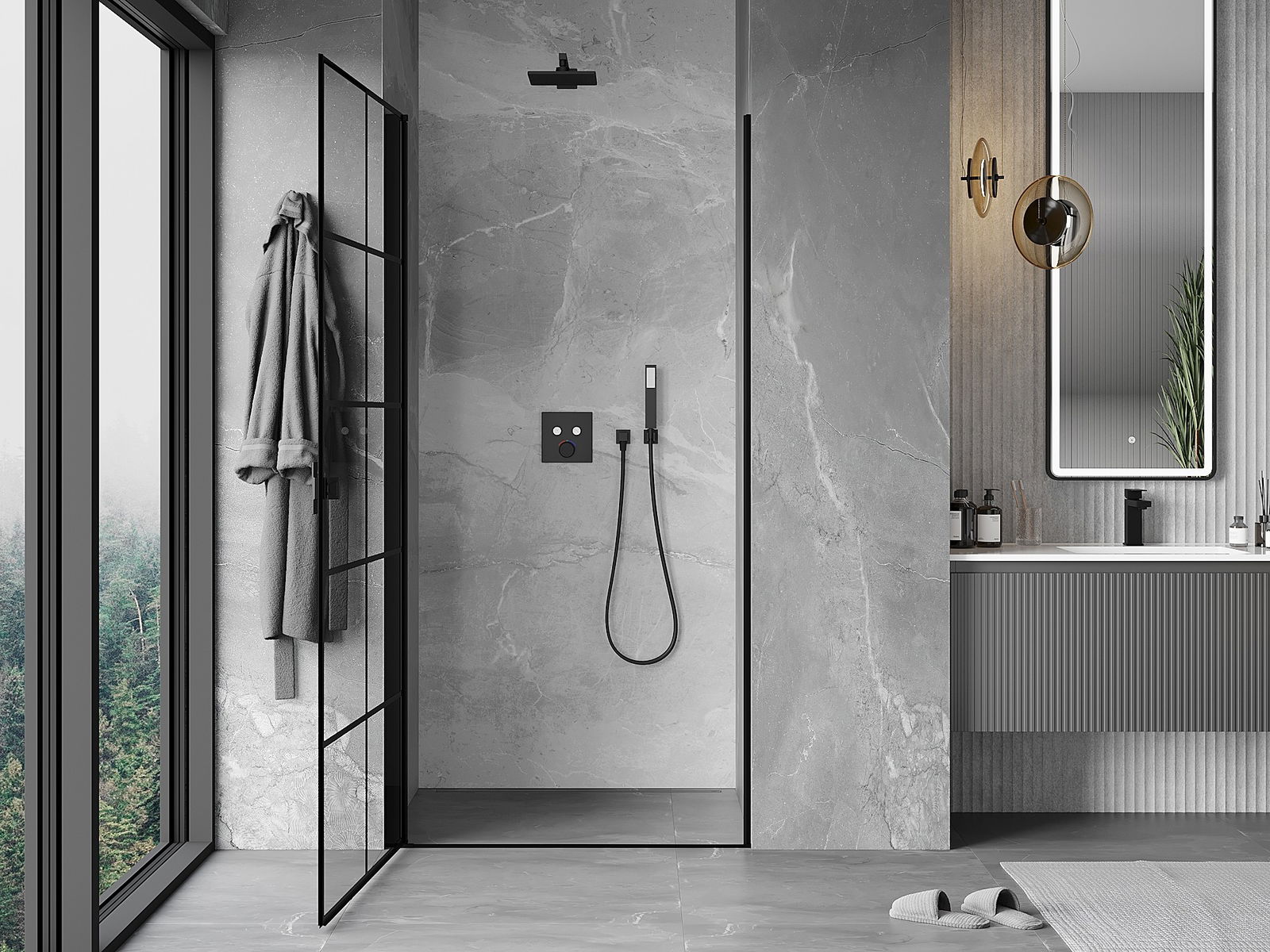 Praktická a pohodlná rukojeť je vyrobena z odolného a trvanlivého kovu. Moderní tvar ve spojení s povrchovou úpravou, která ladí s barvou profilů, dodává celku moderní a stylový vzhled, zdůrazňující estetiku každé koupelny.