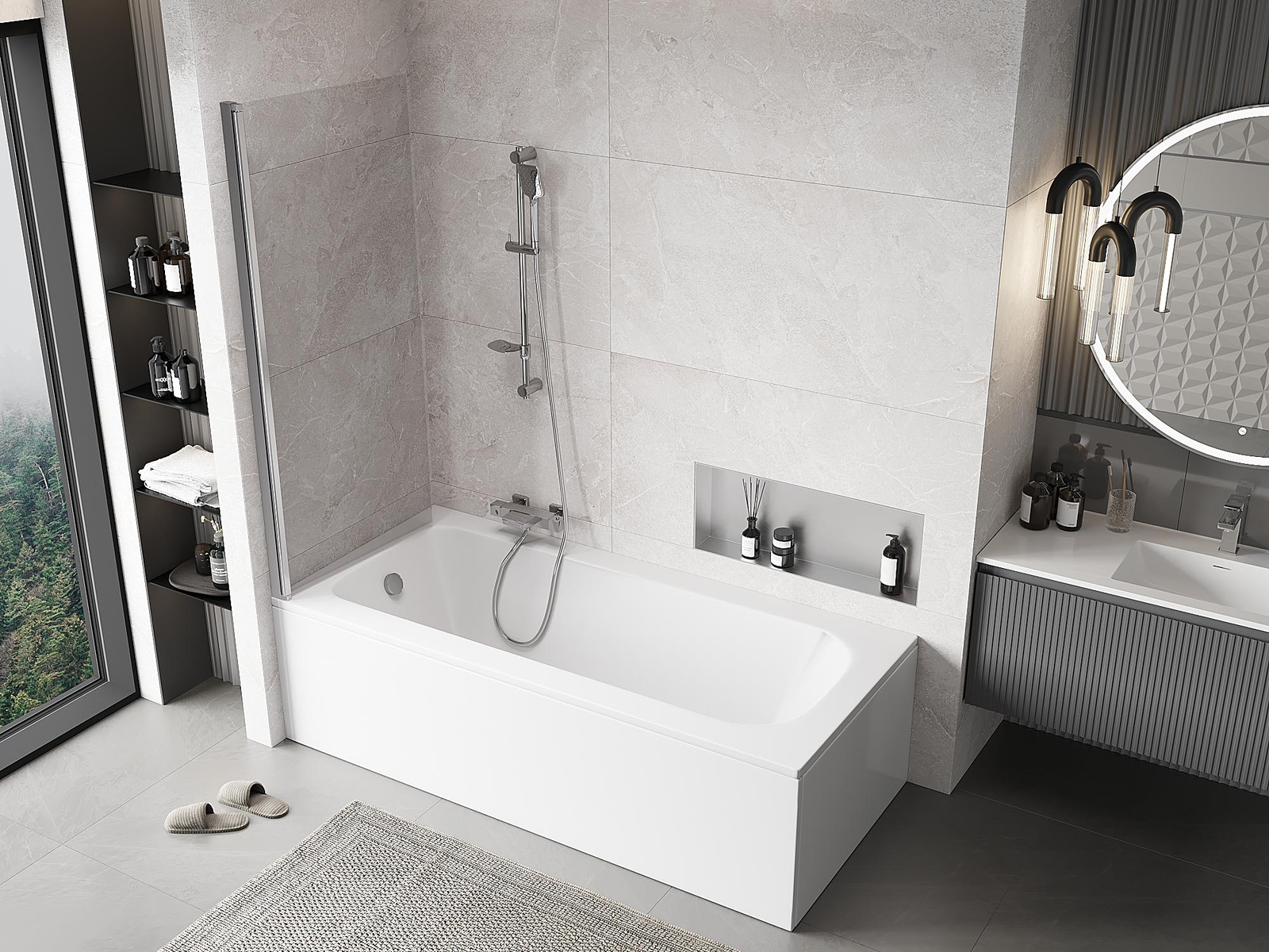 Účinná ochrana před rozléváním vody během koupání. Paraván má těsnění, která se ideálně přizpůsobují skleněné desce a okraji vany. Funkční řešení zajišťující bezpečnost a snadnou údržbu čistoty.