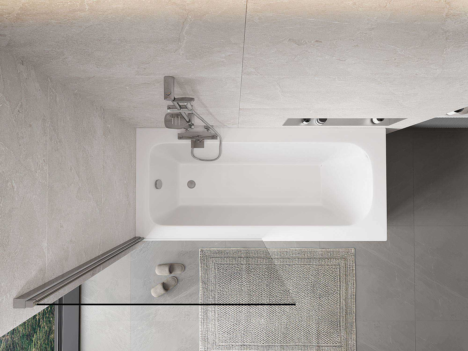Paraván má jedno pohyblivé křídlo s možností složení. Takové řešení umožňuje ušetřit více místa v koupelně a umožňuje volné využívání zbývajícího prostoru, když nevyužíváme koupací zónu.