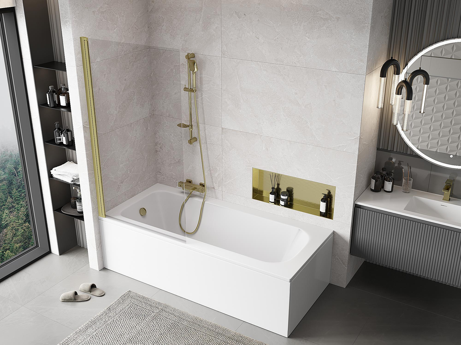 Účinná ochrana před rozléváním vody během koupání. Paraván má těsnění, která se ideálně přizpůsobují skleněné desce a okraji vany. Funkční řešení zajišťující bezpečnost a snadnou údržbu čistoty.