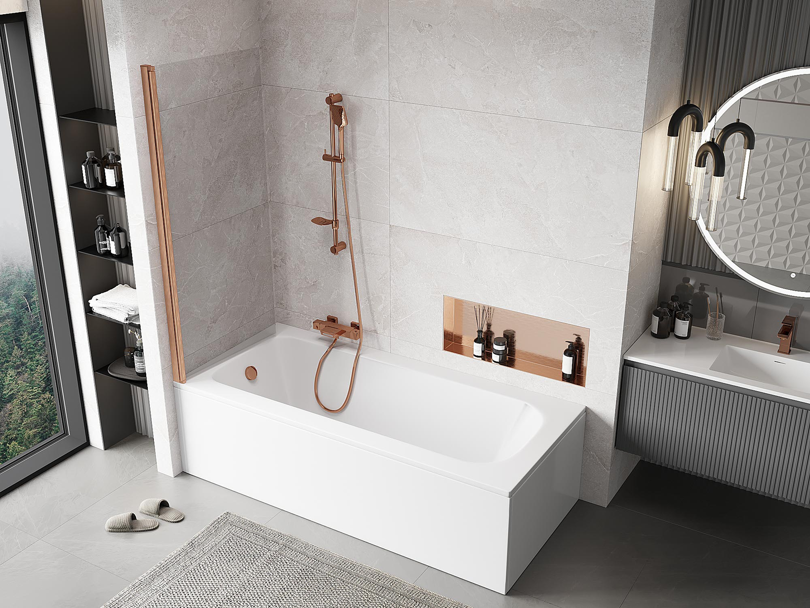 Účinná ochrana před rozléváním vody během koupání. Paraván má těsnění, která se ideálně přizpůsobují skleněné desce a okraji vany. Funkční řešení zajišťující bezpečnost a snadnou údržbu čistoty.