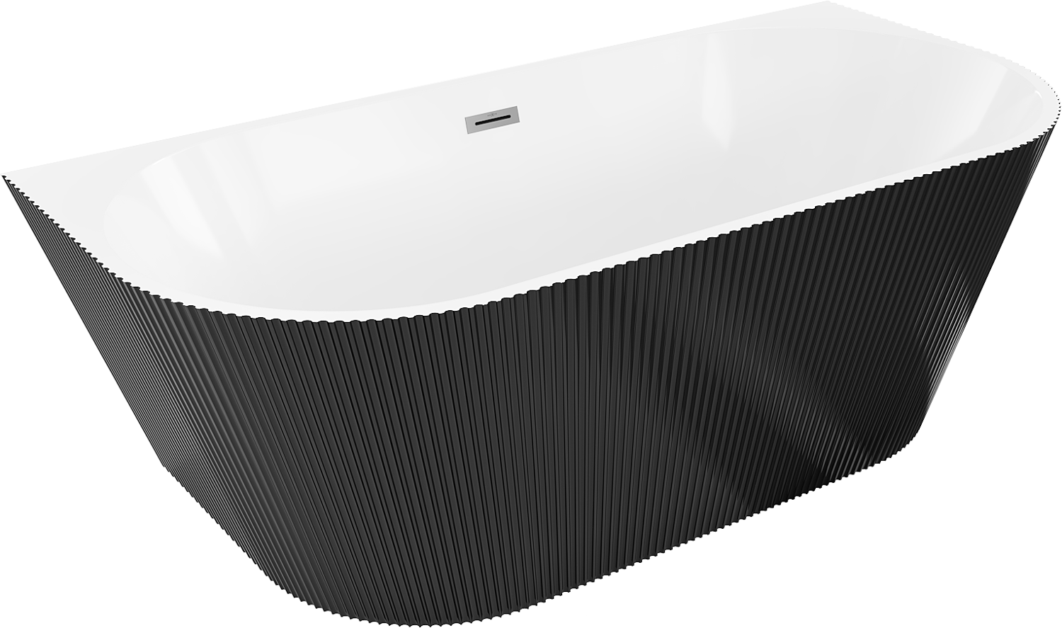 Mexen Oris volně stojící vana k přisunutí k stěně, rýhovaná 150 x 75 cm, bílá/černá, přepad gun metal - 52871507575-95