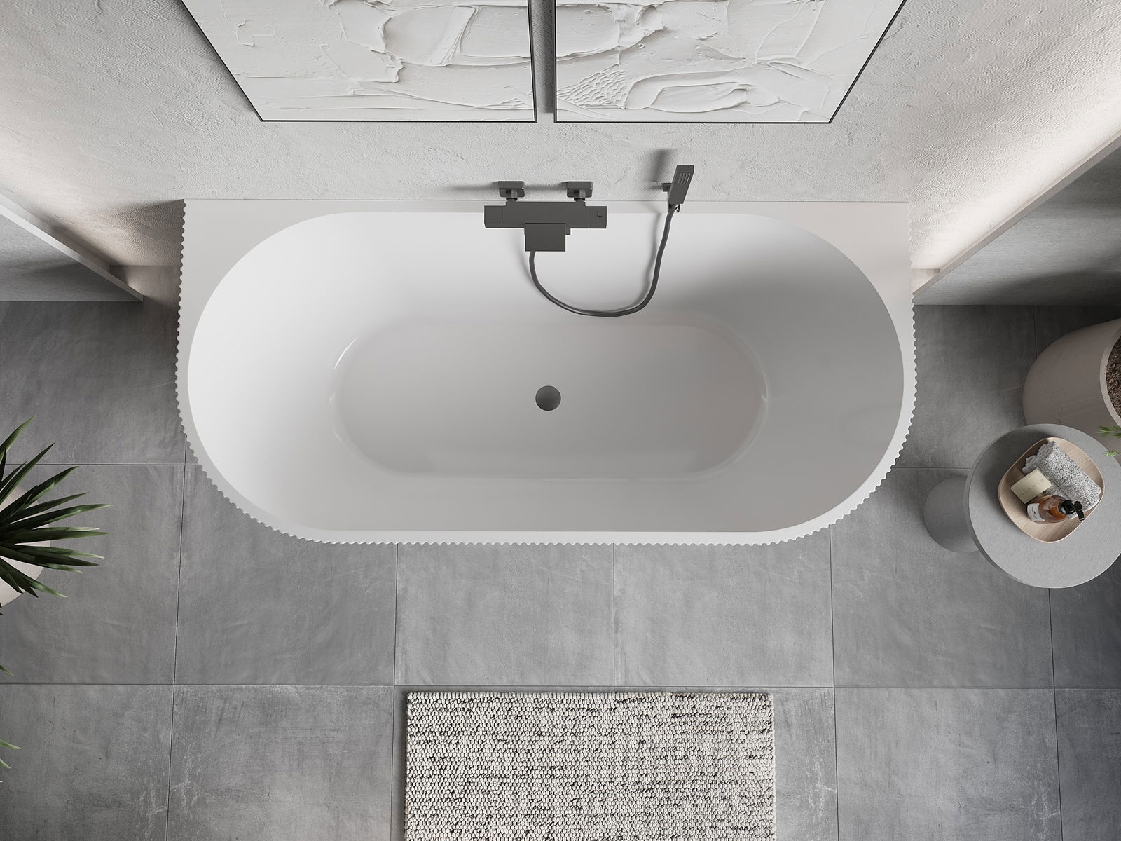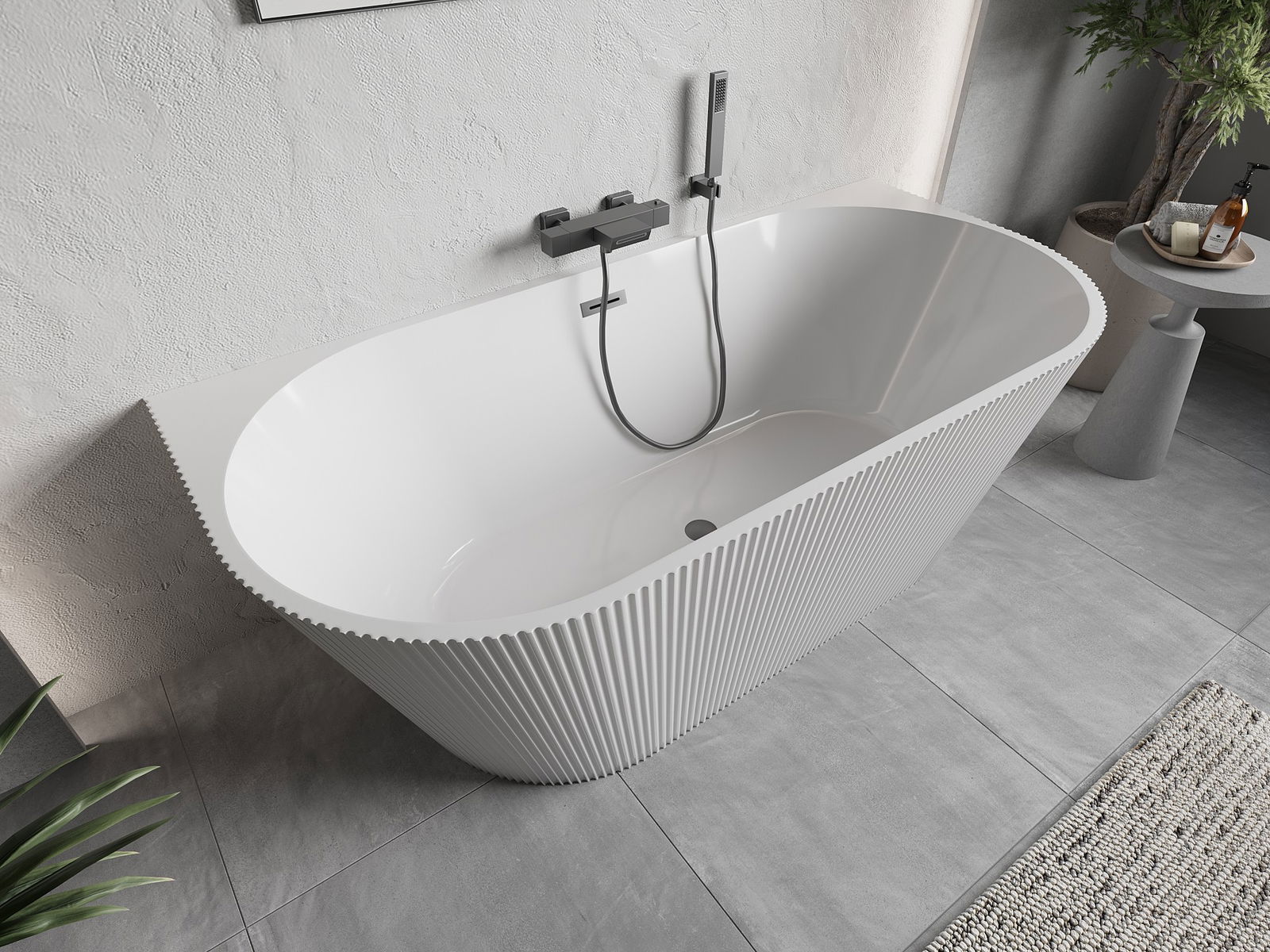 Jedná se o moderní materiál spojující elegantní vzhled s vysokou odolností. Je odolný vůči mechanickému poškození, snadno se čistí a je příjemný na dotek. Průhledná forma a tenký okraj vany jí dodávají lehkost a jedinečný charakter, čímž vytvářejí působivý prvek v uspořádání koupelny.