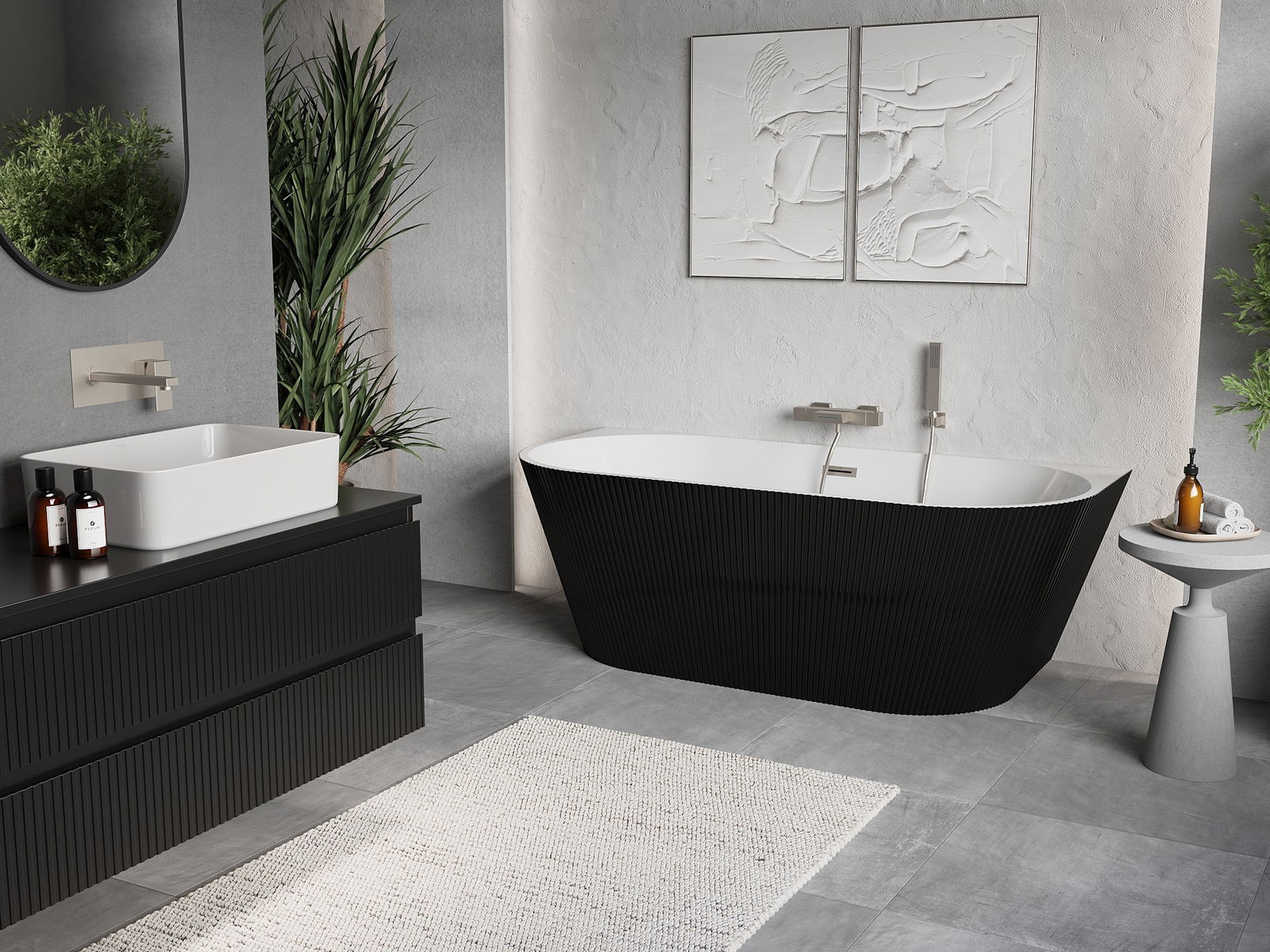 Mexen Oris vana volně stojící přisazená rýhovaná 170 x 80 cm, bílá/černá, přepad nikl kartáčovaný - 52871708075-97
