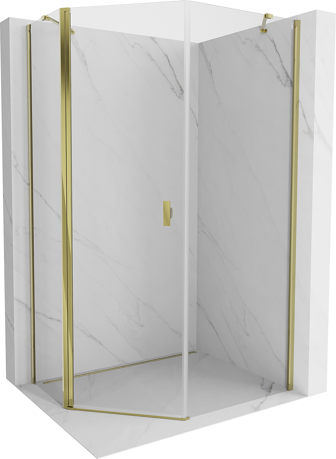 Mexen Mist pětiúhelníková asymetrická sprchová kabina, 80 x 90 cm, transparentní, zlatá - 8A8-080-090-50-00